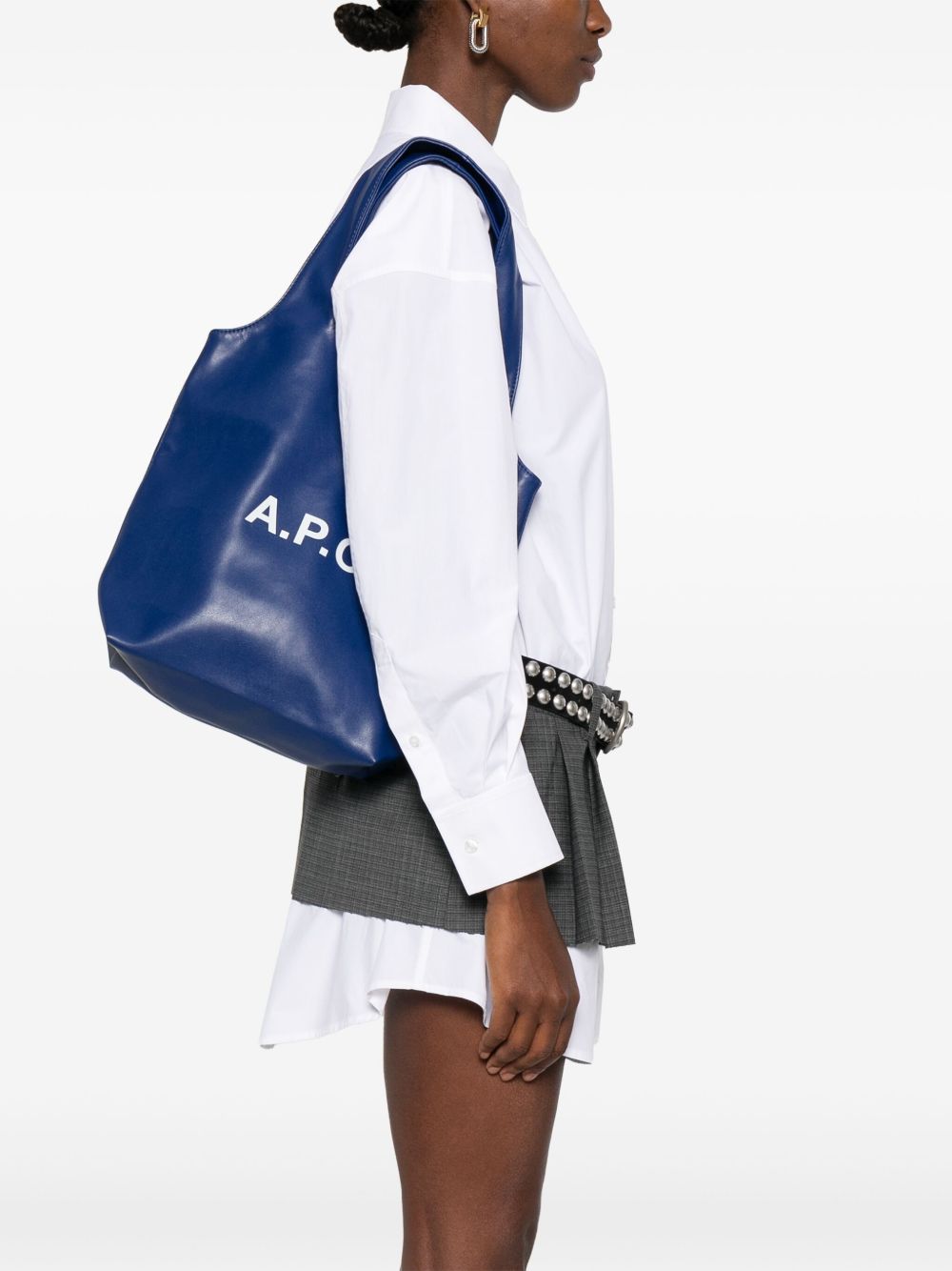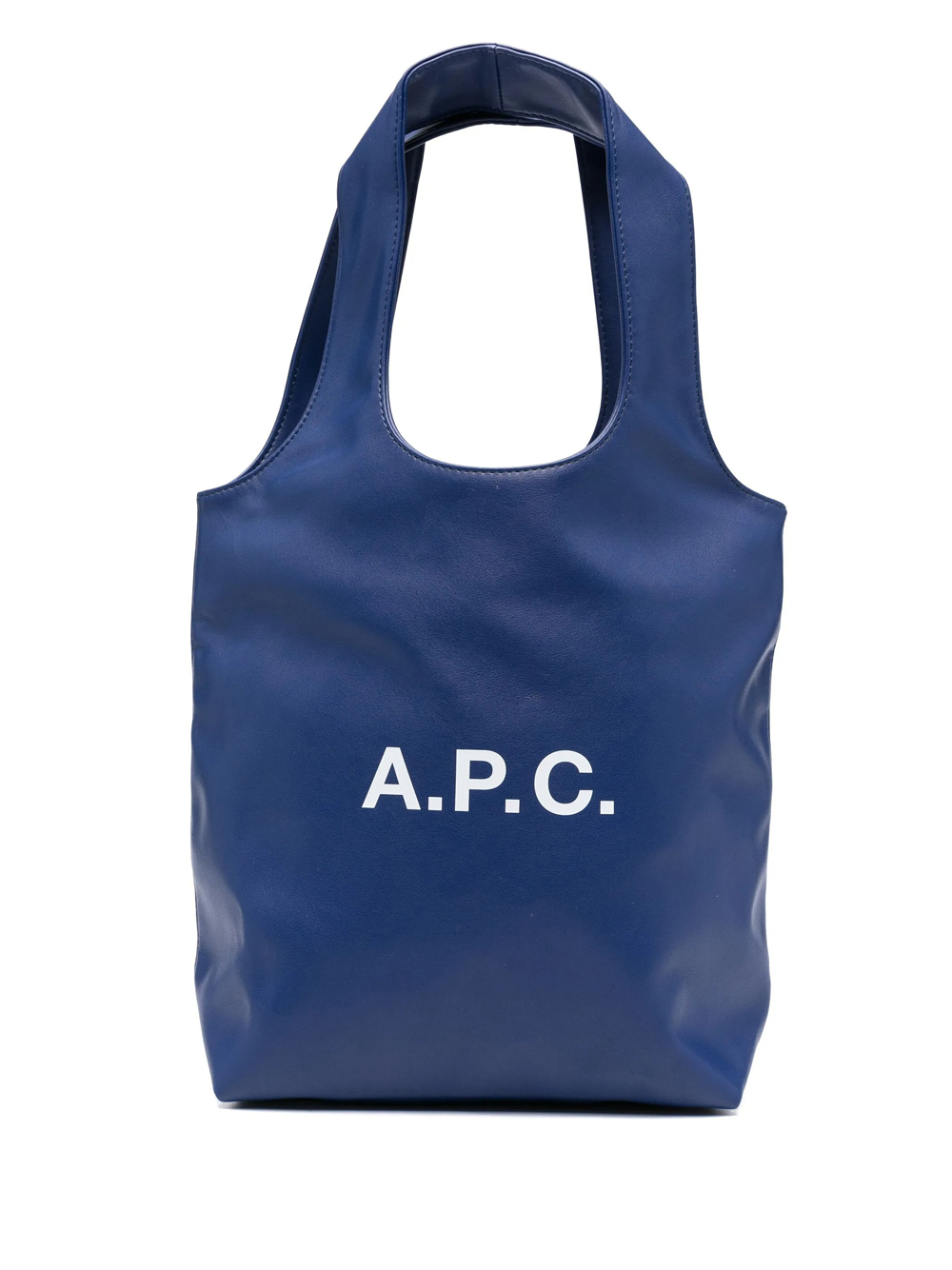 Borsa blu Ninon Small Tote di A.P.C. in poliuretano con 2 manici, tasca interna e logo frontale.