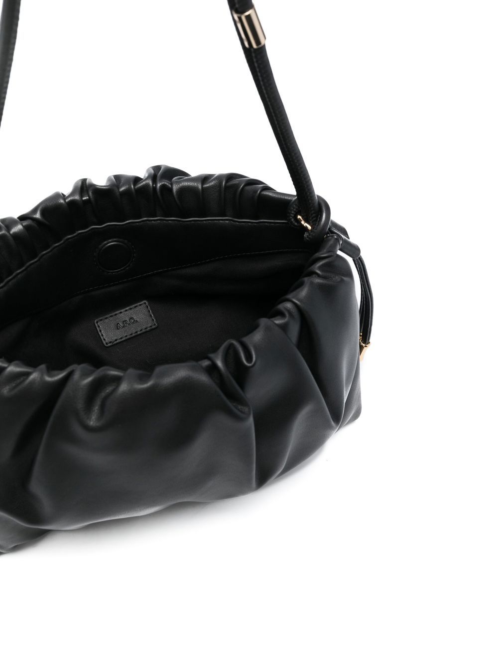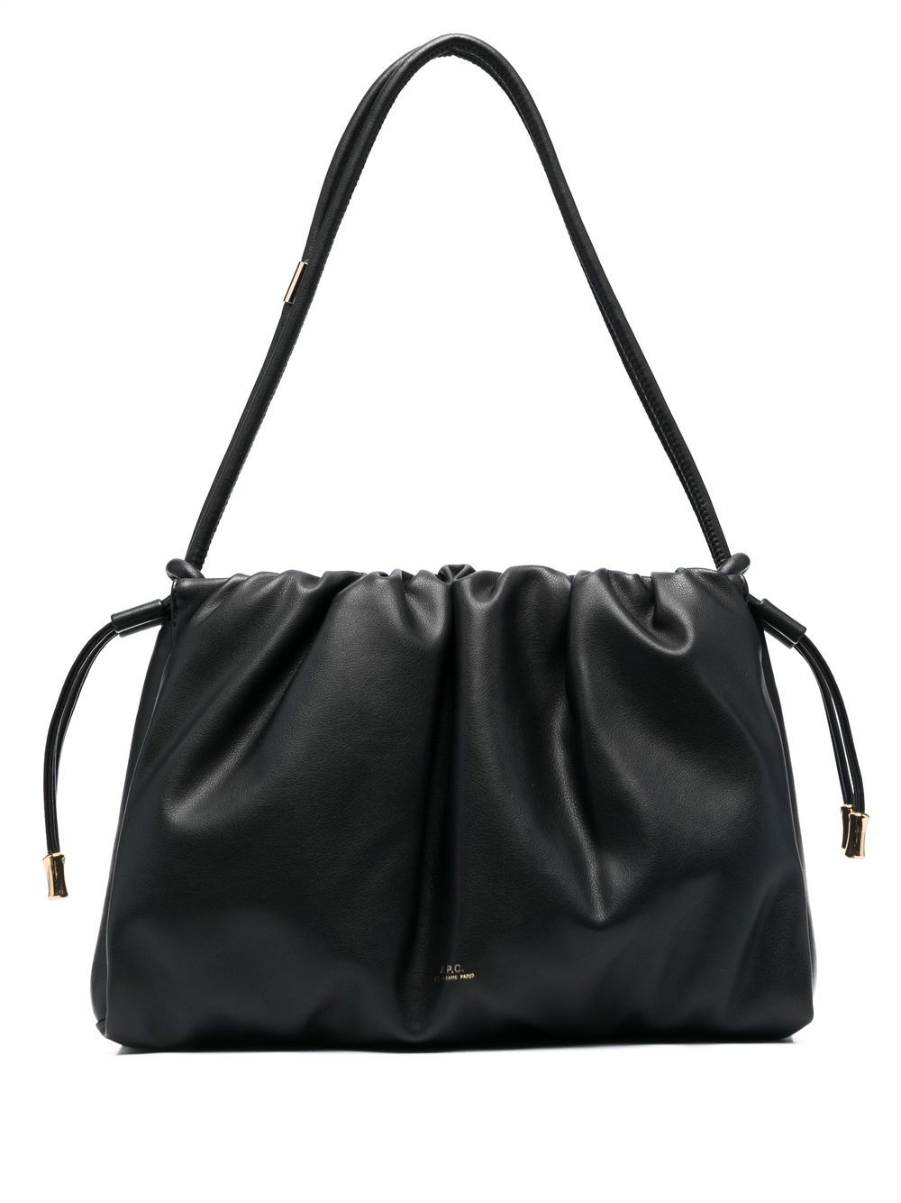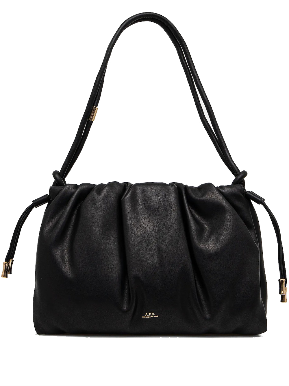 Borsa nera Ninon di A.P.C. in poliuretano con chiusura magnetica , dettagli color oro e logo in lettere color oro.
