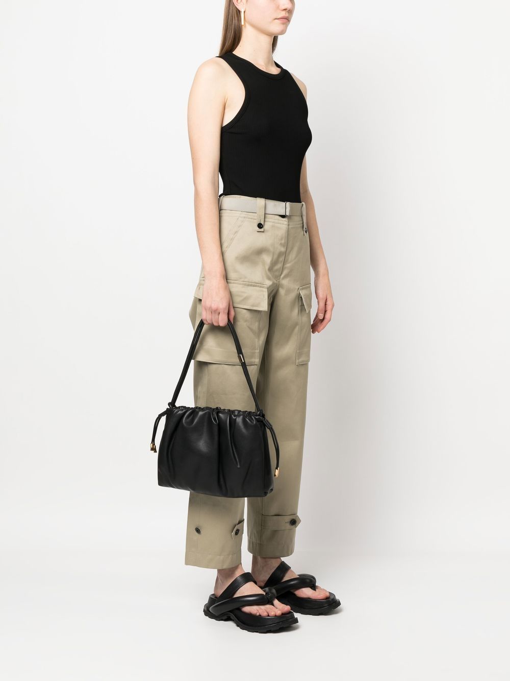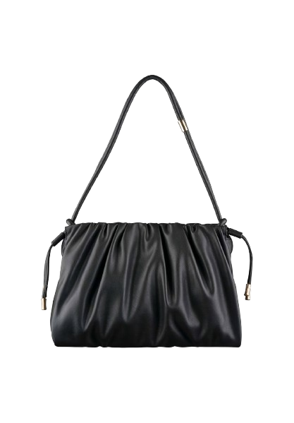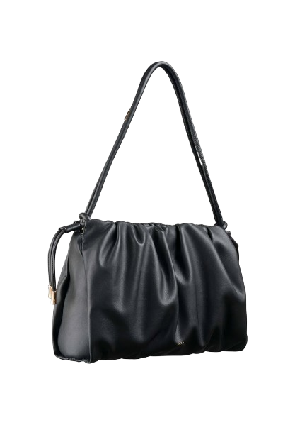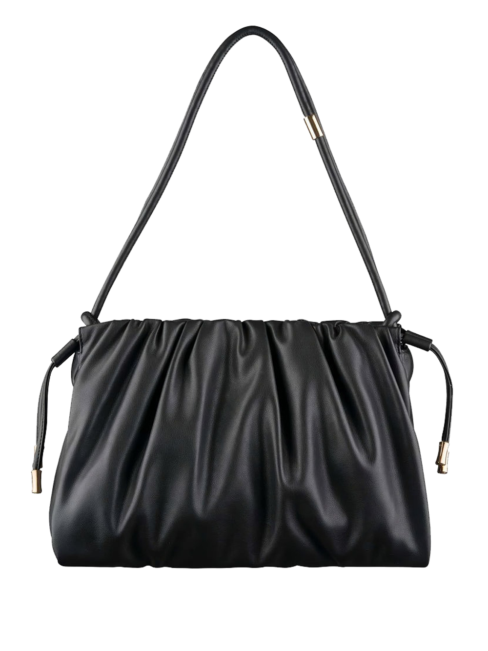 Borsa nera Ninon di A.P.C. in poliuretano con chiusura magnetica , dettagli color oro e logo in lettere color oro.