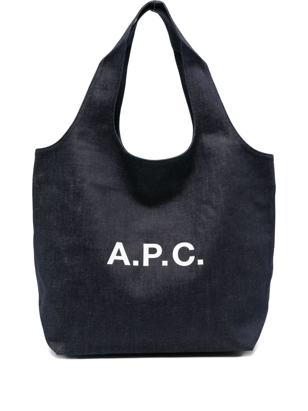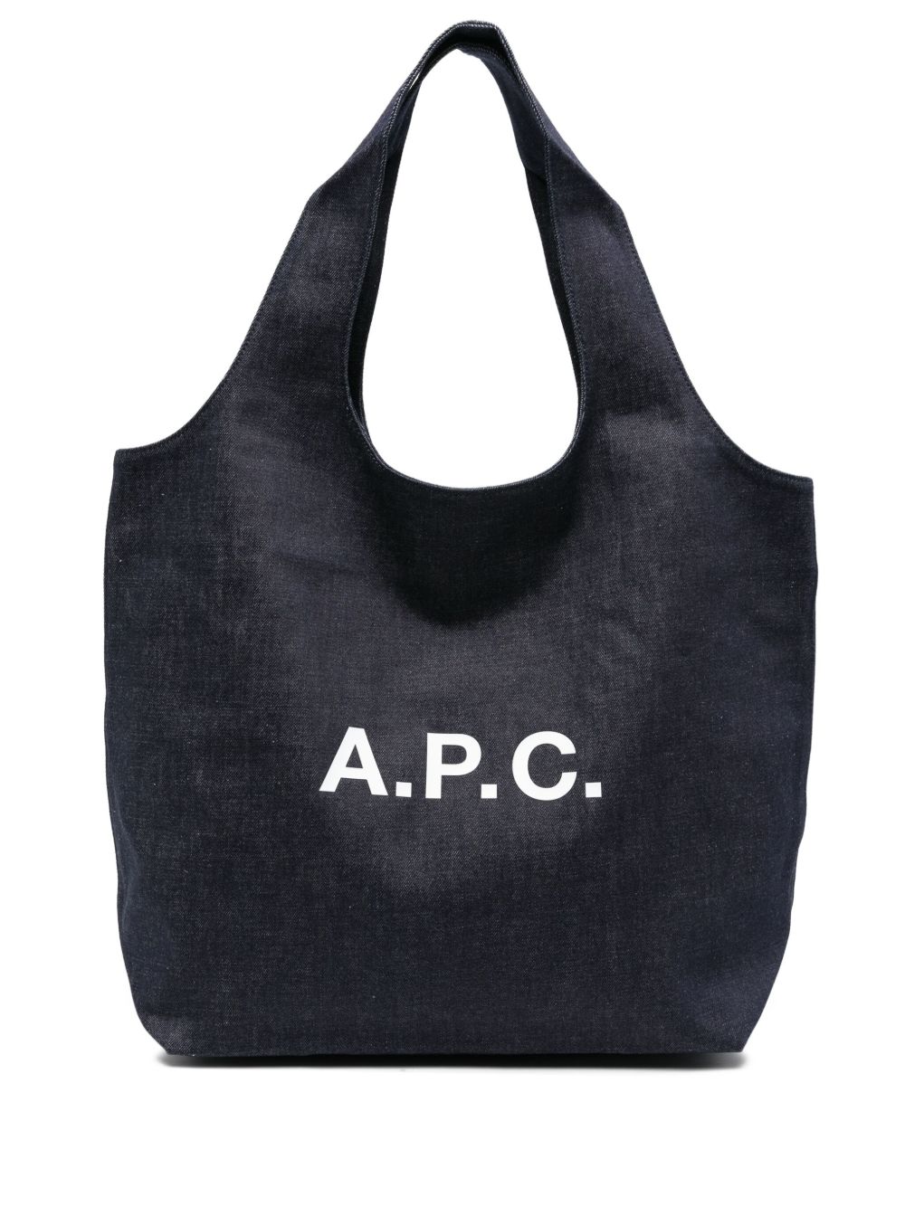Borsa indigo Ninon Tote di A.P.C. in poliuretano con 2 manici, tasca interna e logo frontale.
