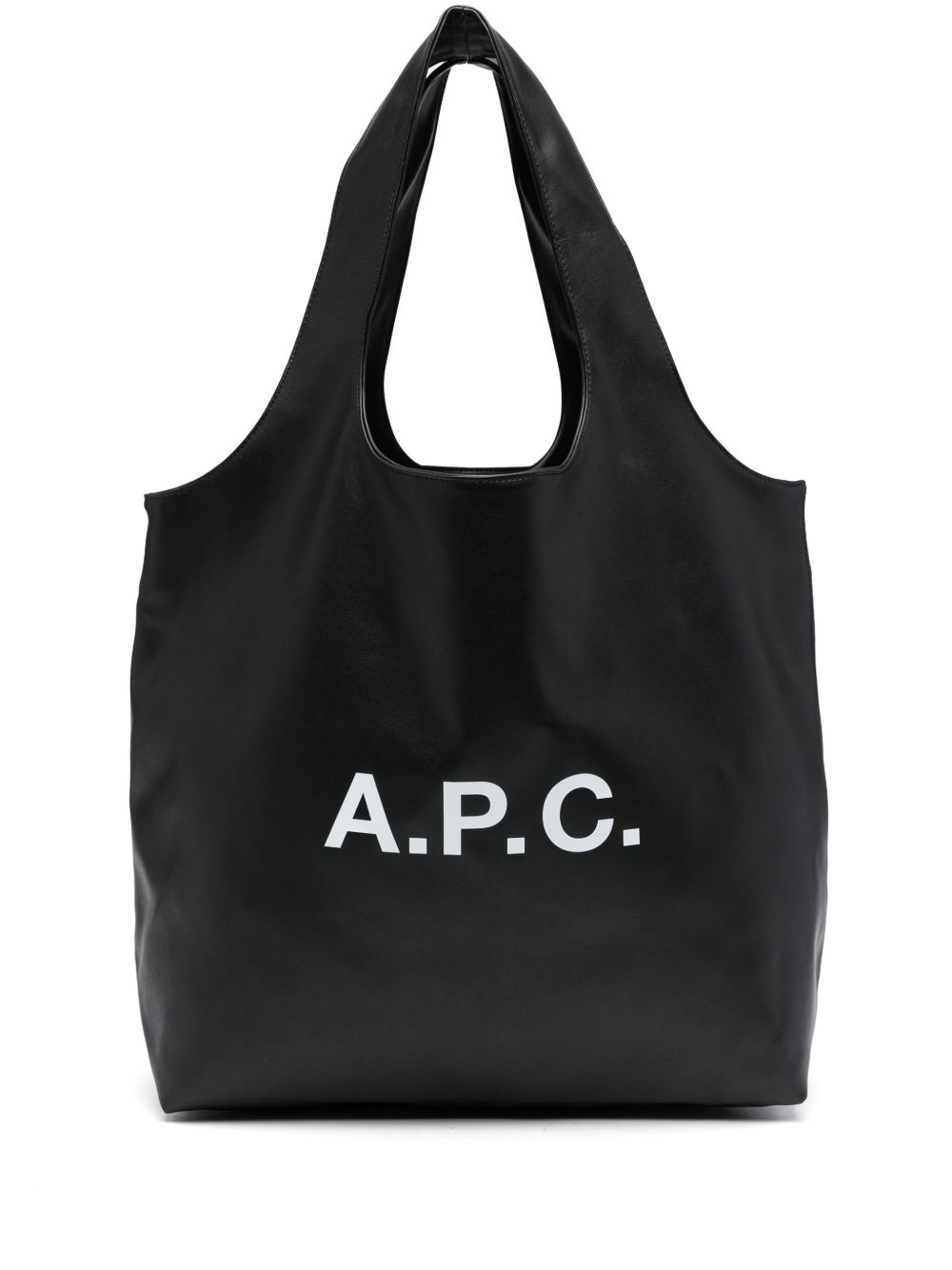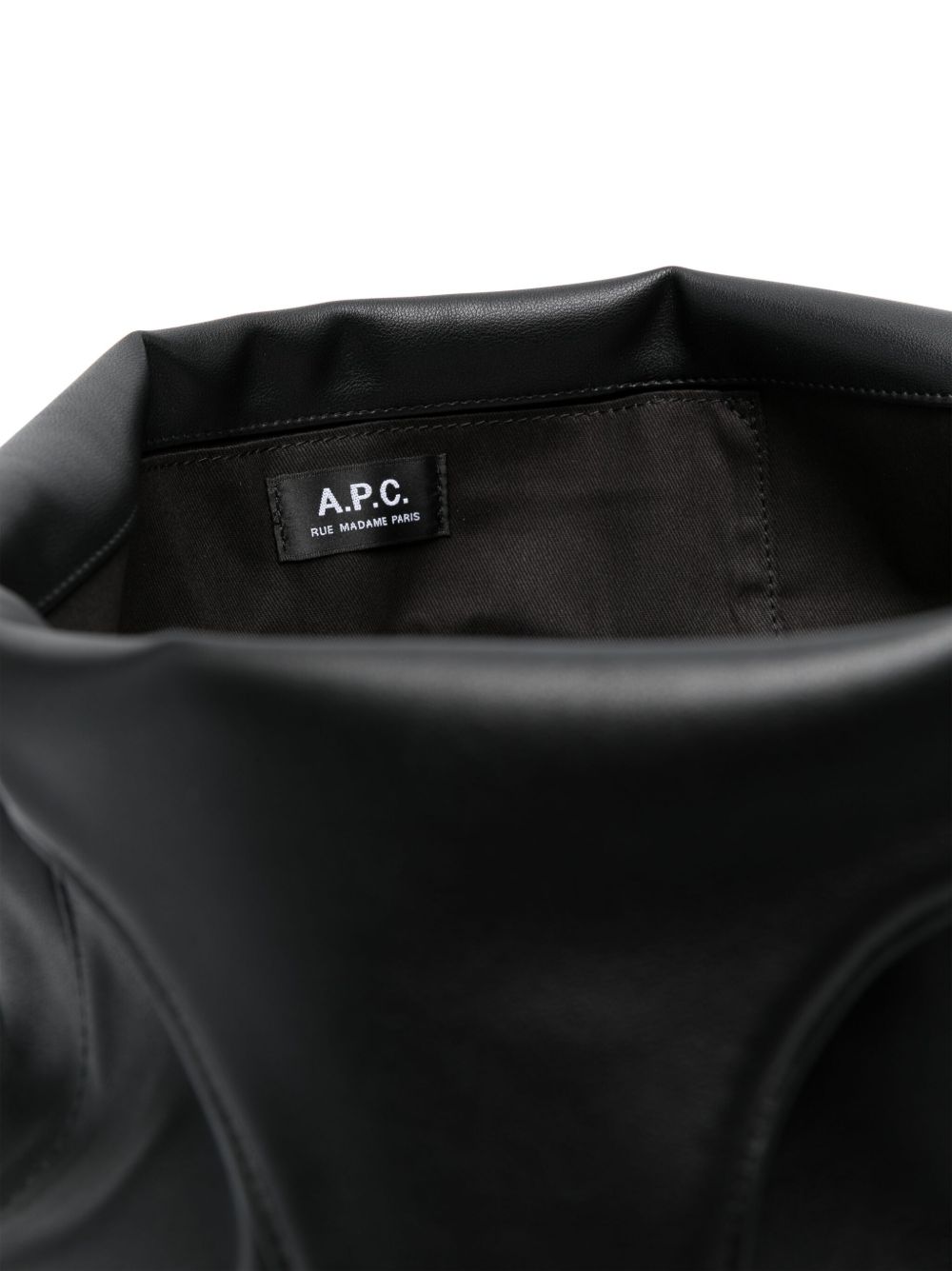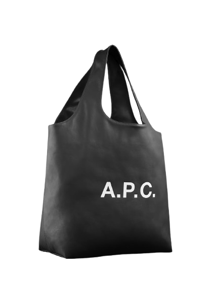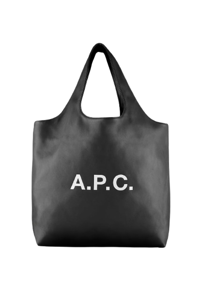 Borsa nera Ninon Tote di A.P.C. in poliuretano con 2 manici, tasca interna e logo frontale.