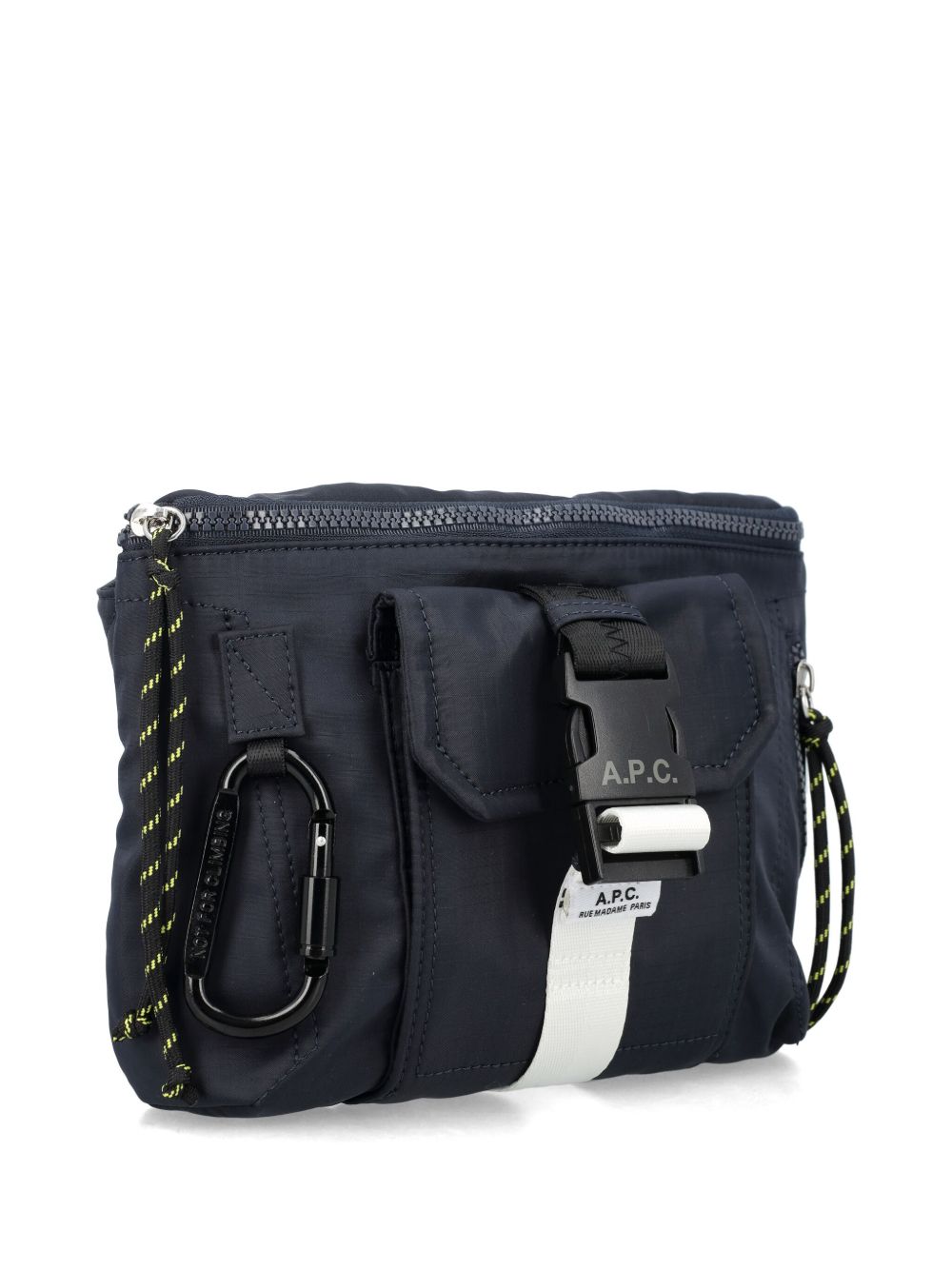 Borsa navy Trek Bum di A.P.C. in nylon con stampa con logo sul davanti, applicazione posteriore con logo, chiusura superiore con zip, chiusura con fibbia, tasca frontale con patta e tasca laterale con zip.