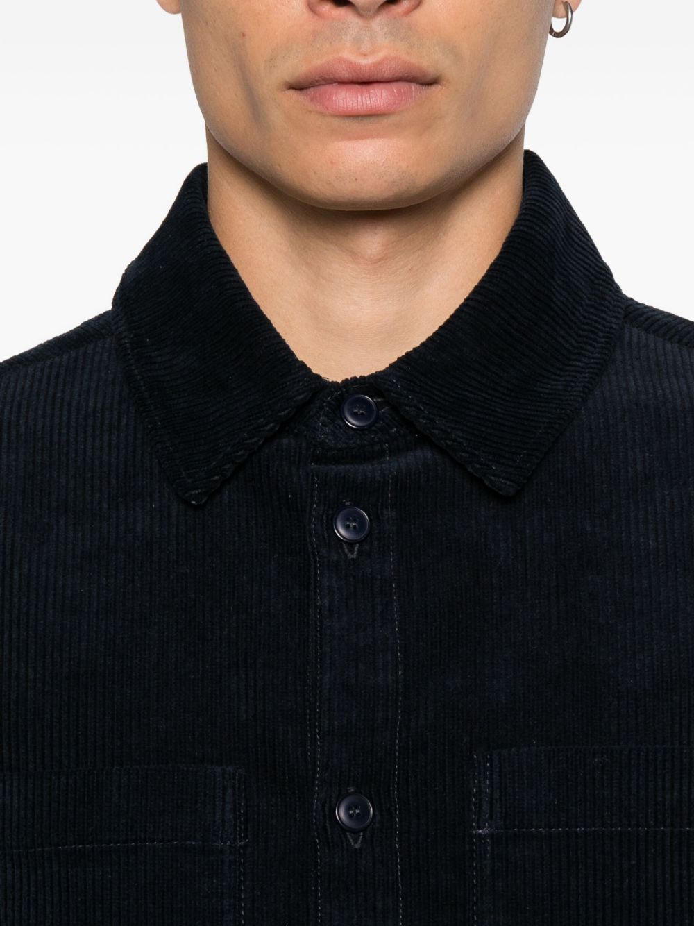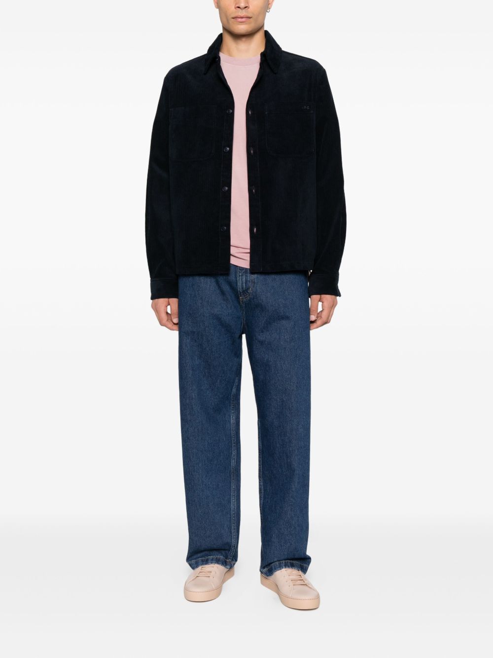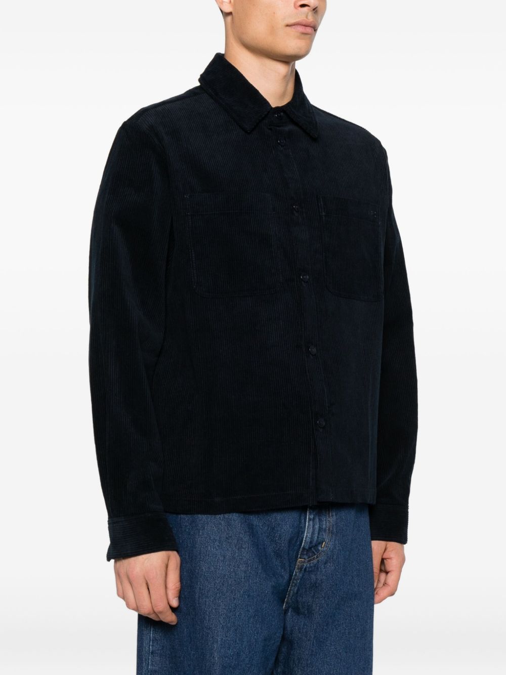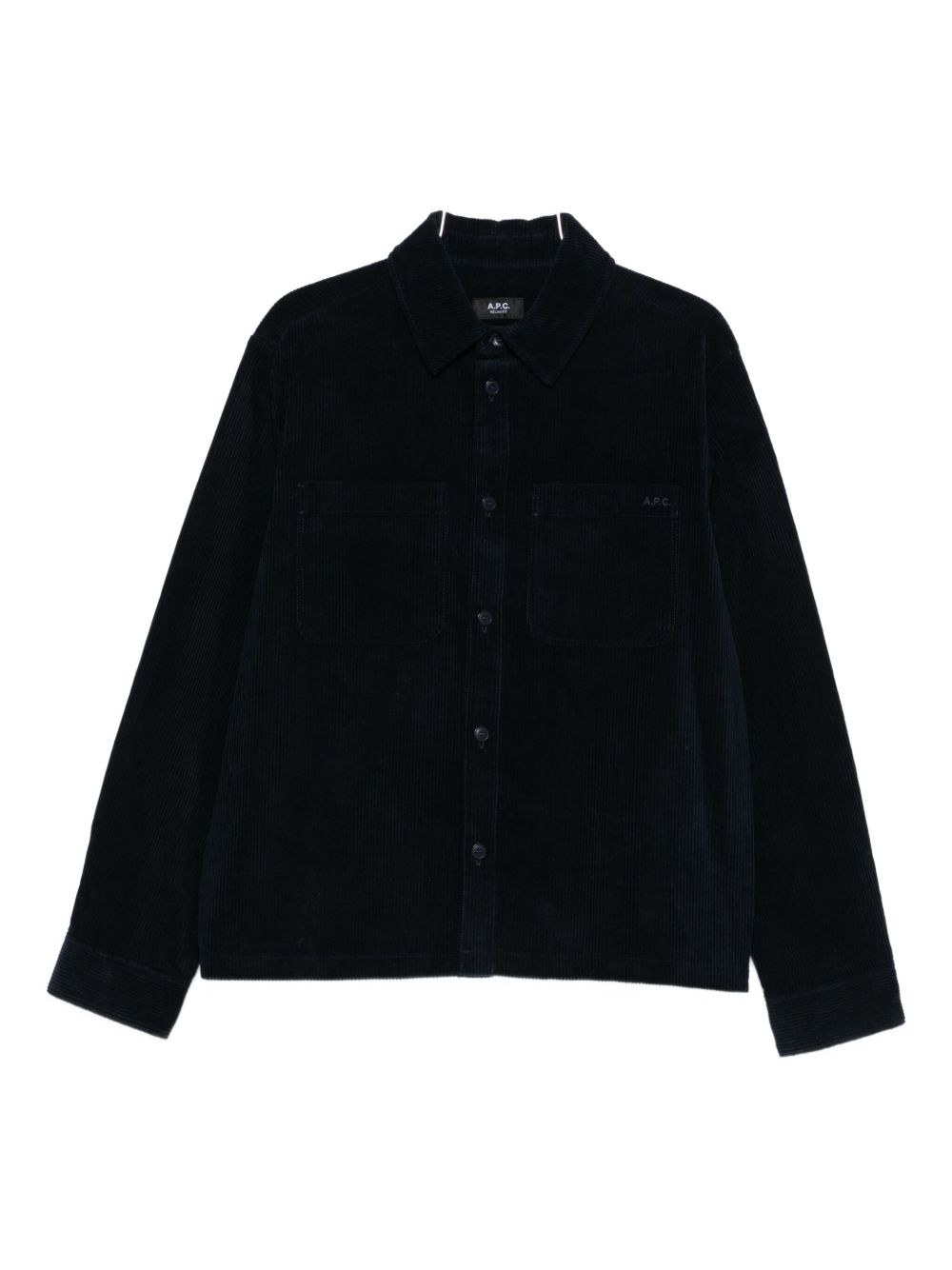 Camicia navy Leon di A.P.C. in cotone con colletto classico, chiusura a bottoni, maniche lunghe e due tasche sul petto.