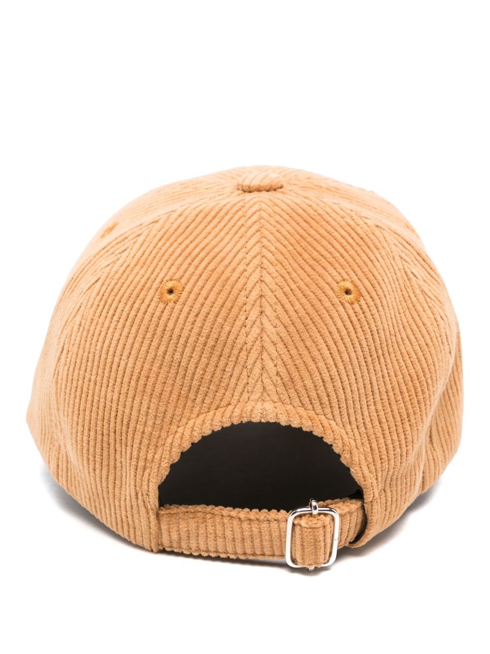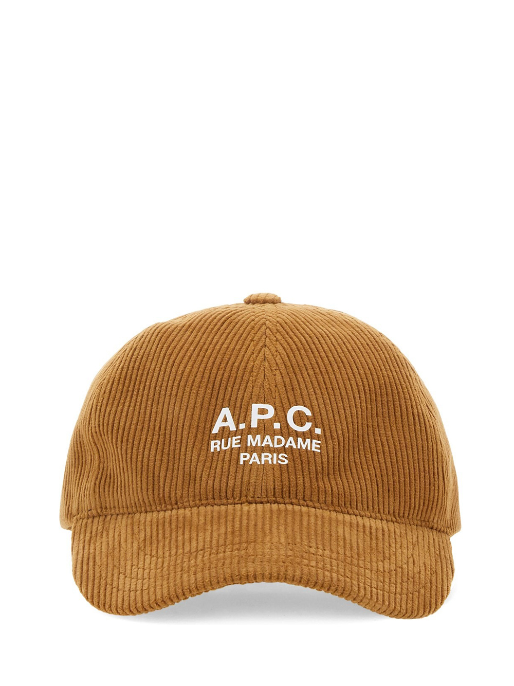 Cappello caramel Charlie Rue Madame di A.P.C. in velluto con fascia con fibbia posteriore regolabile, design a sei inserti, stampa con logo sul davanti, tesa curva e dettaglio occhiello.