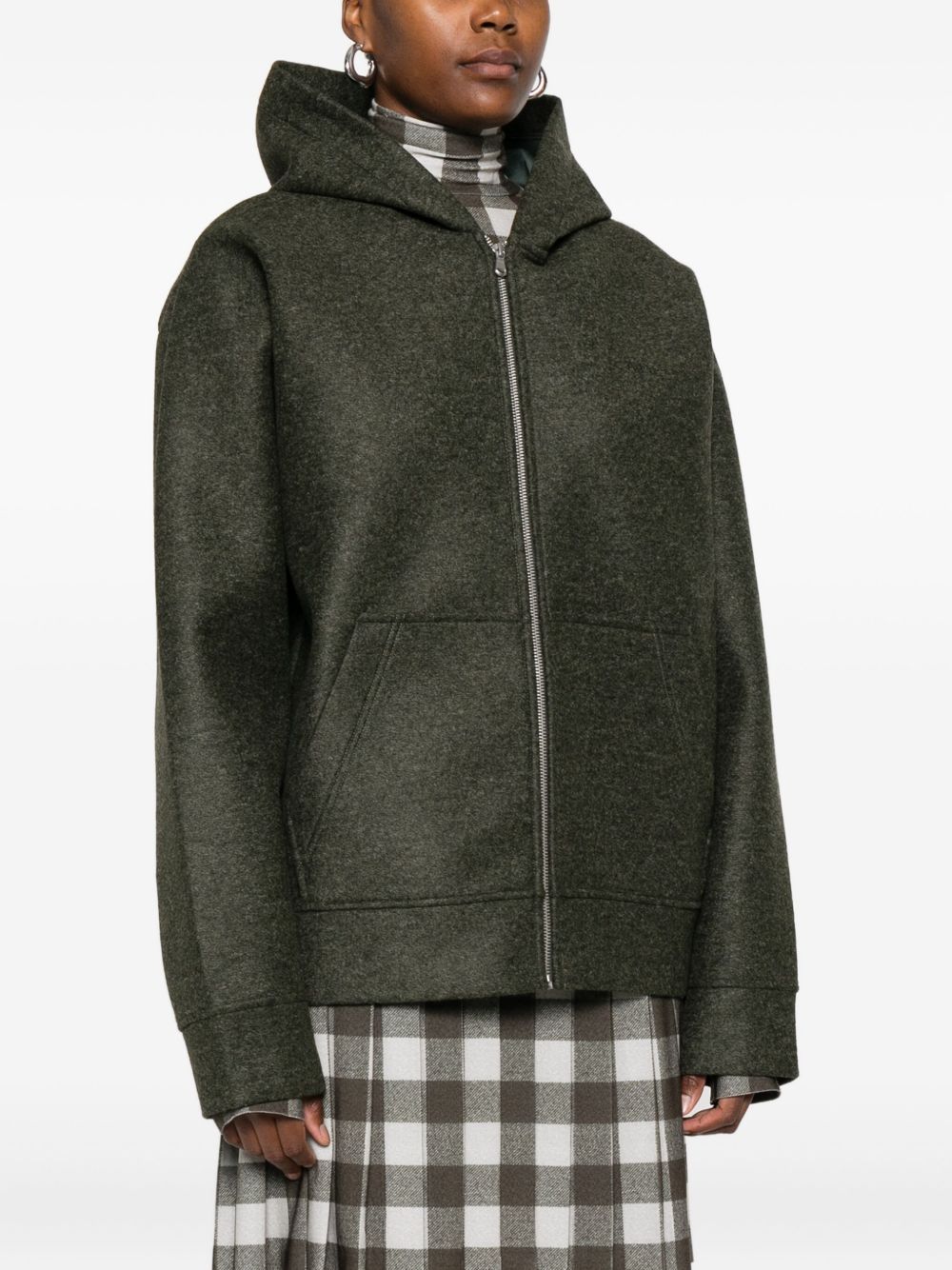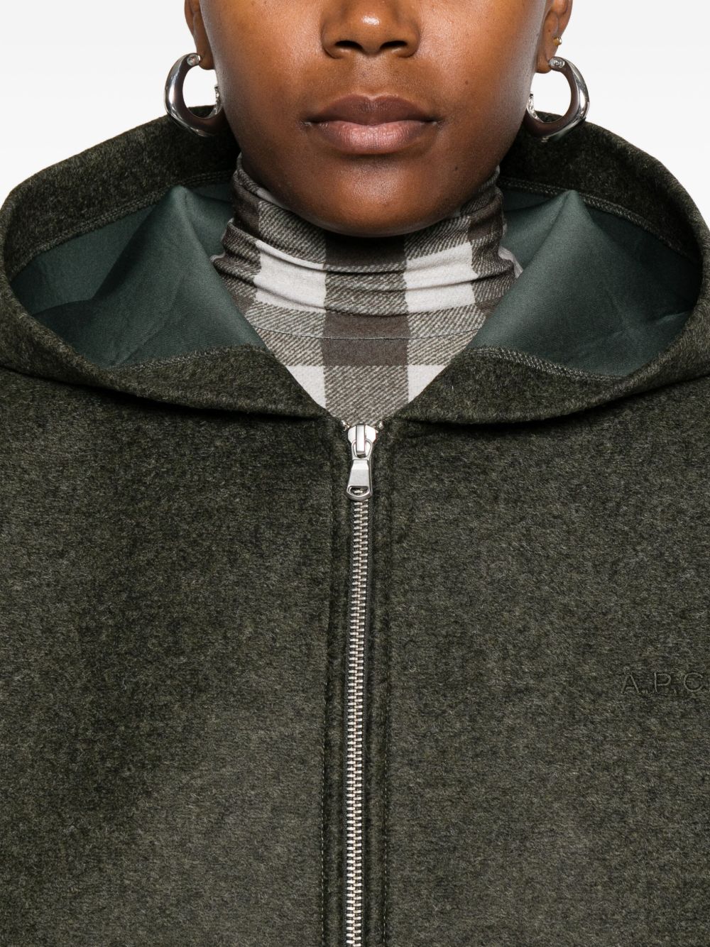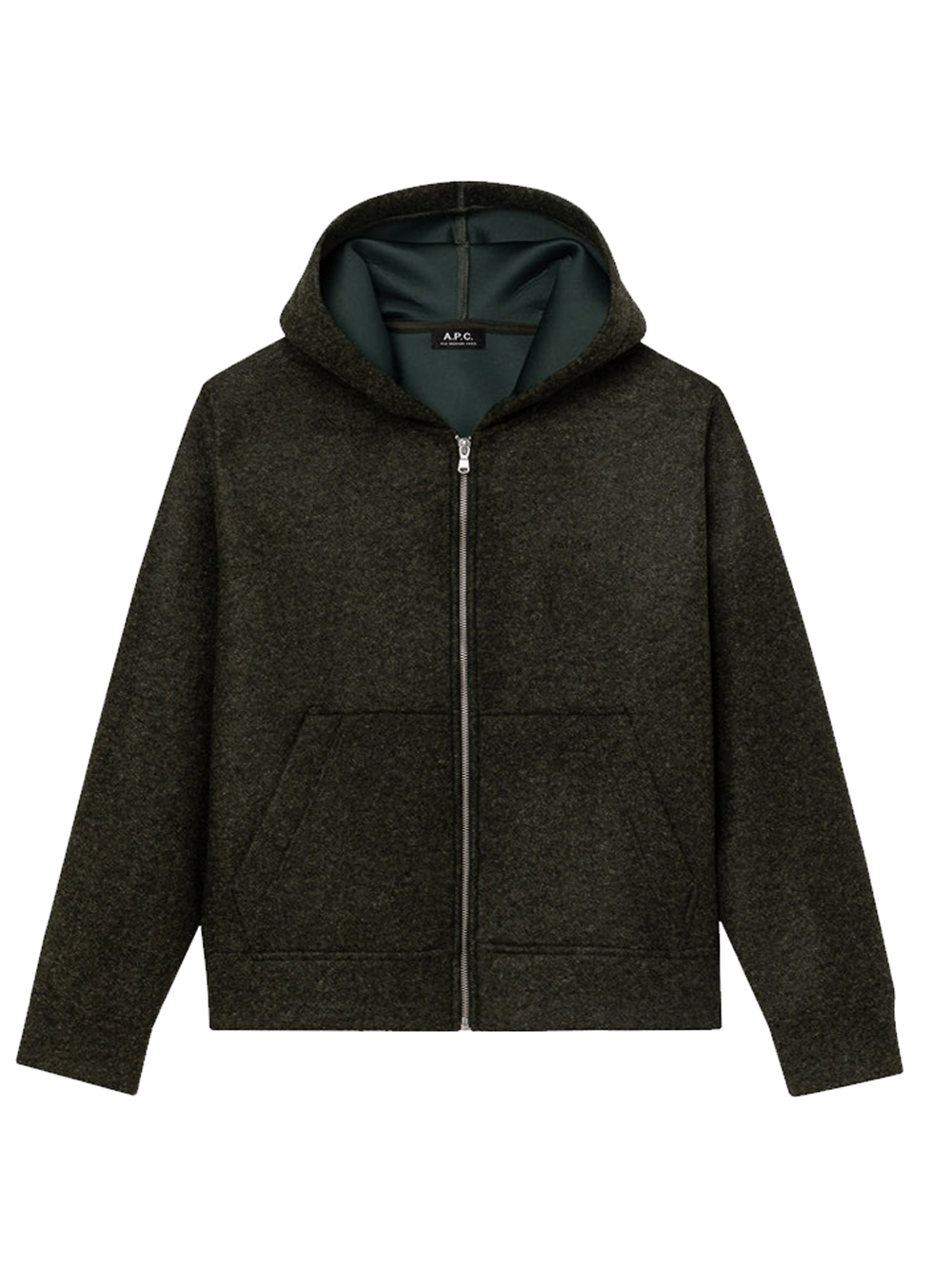 Felpa verde scuro Alvin di A.P.C. in poliestere con cappuccio, chiusura frontale con zip, tasche laterali e orlo dritto.
