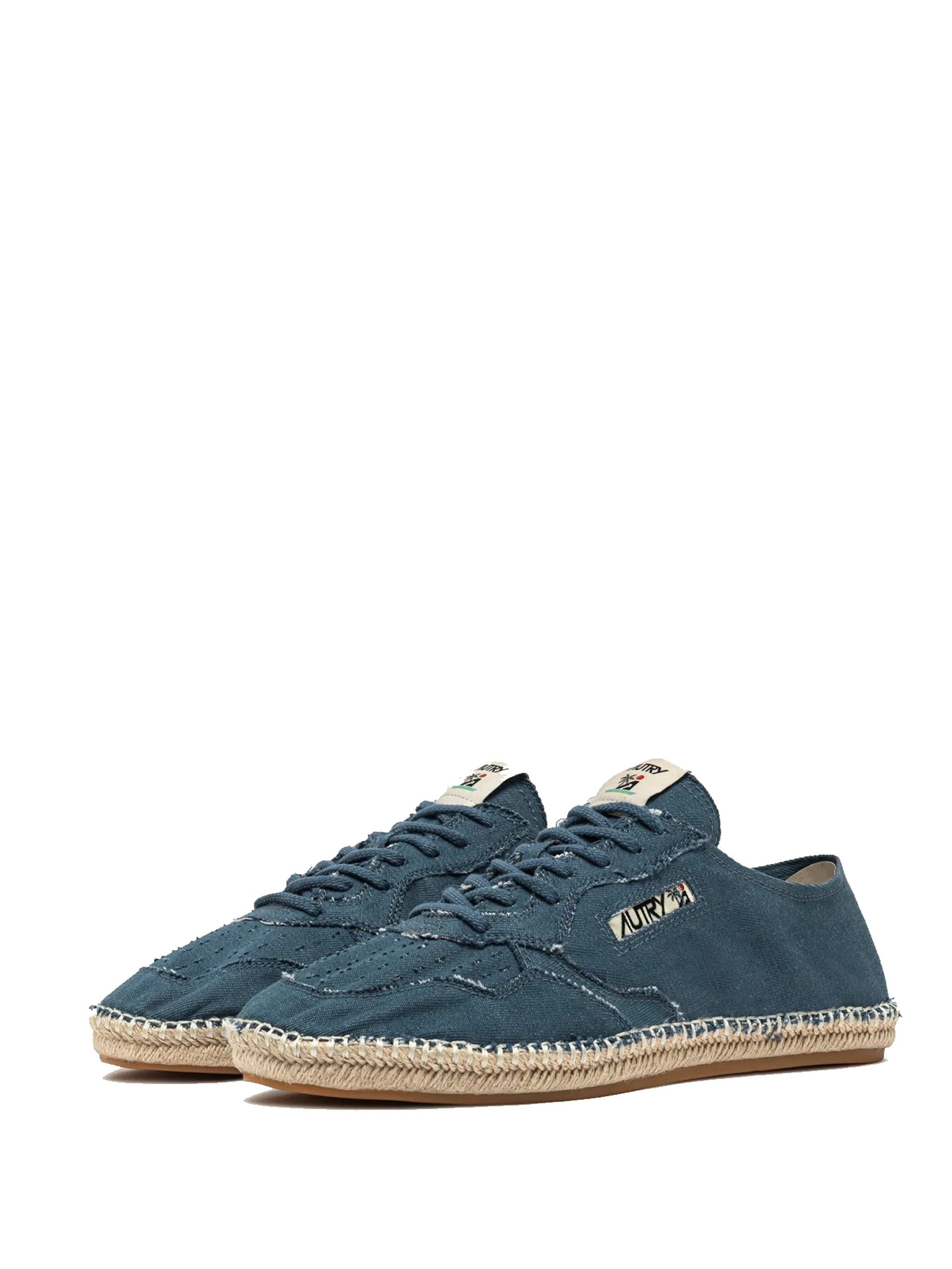 Sneakers blu Espadrillas Sandy in cotone con punta tonda, chiusura frontale con lacci, logo laterale, label logata sulla linguetta e suola in eva e corda.