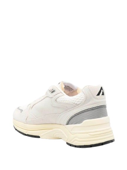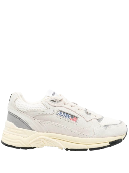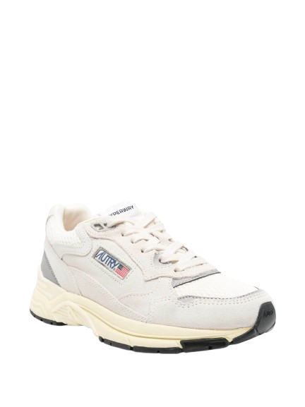 Sneakers bianche Hyperway HYLMUM10 di Autry in pelle con punta tonda traforata, chiusura con lacci, pannelli a contrasto, etichetta con logo, linguetta con logo e suola in gomma.