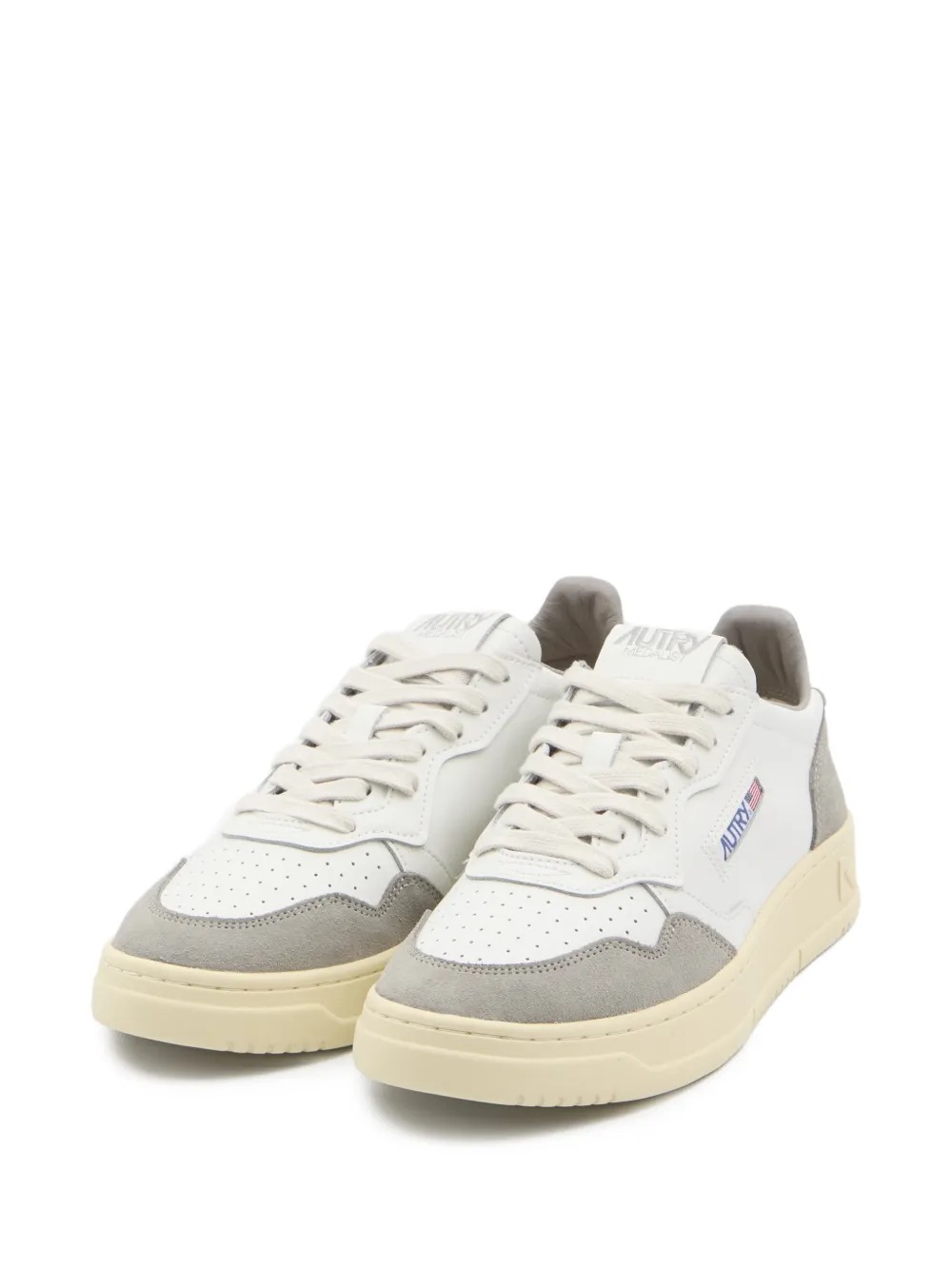 Sneakers bianche e grigia Medalist Low Aulm ft01 di Autry in pelle con punta tonda, design traforato, chiusura con lacci, etichetta con logo e suola in gomma.