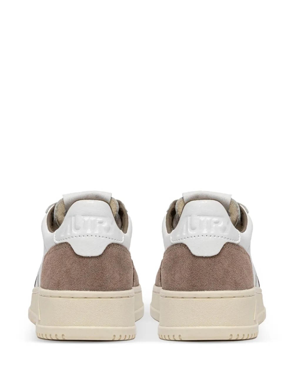 Sneakers bianche e marrone Medalist Low Aulm ft02 di Autry in pelle con punta tonda, design traforato, chiusura con lacci, etichetta con logo e suola in gomma.