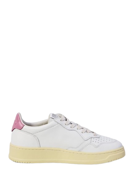 Sneakers bianche Medalist Low Aulw LL15 di Autry in pelle con punta tonda, chiusura frontale con lacci, logo laterale, dettaglio sul tallone color argento e suola piatta in gomma.