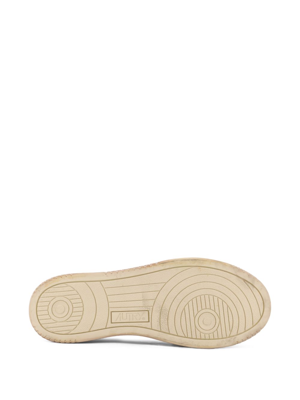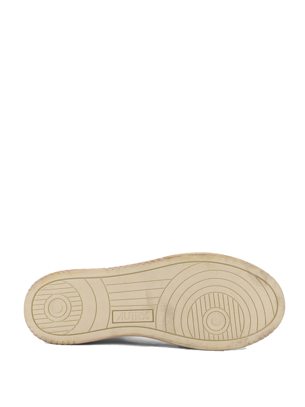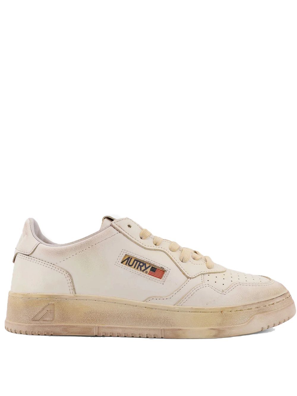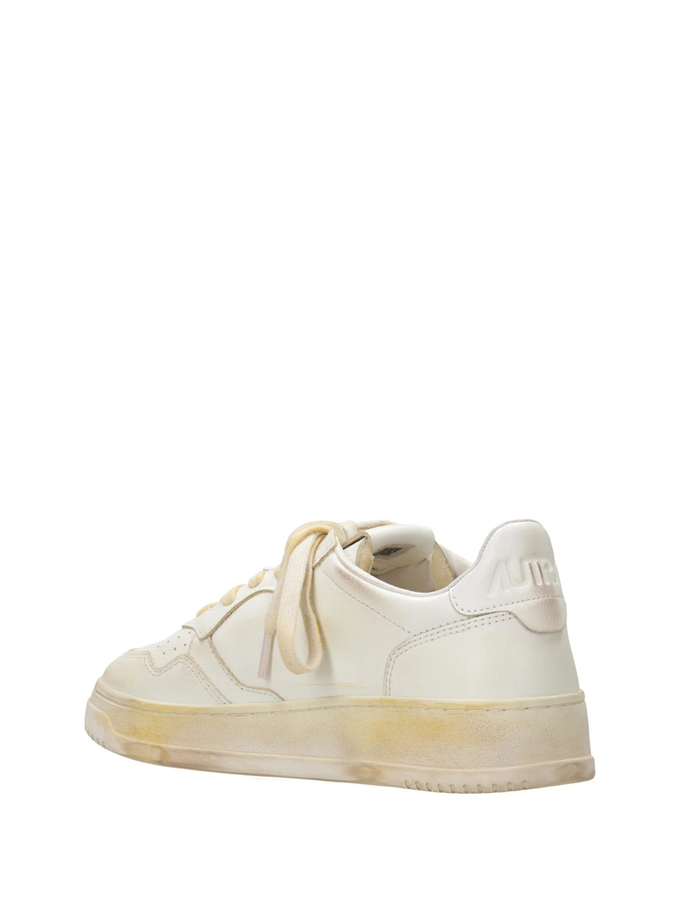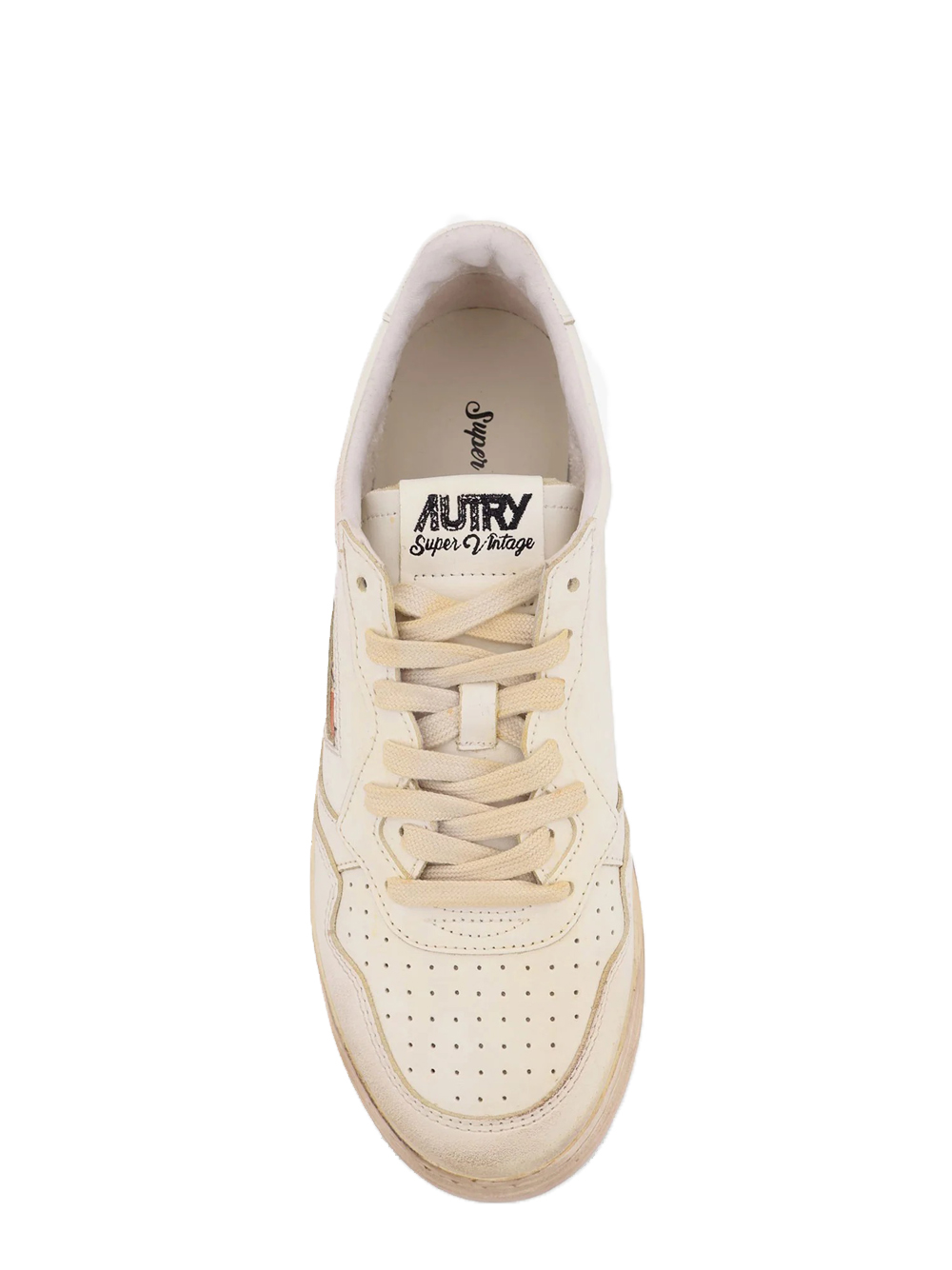 Sneakers bianche Medalist Low Super Vintage Aulm SV01 di Autry in pelle con punta tonda, design traforato, chiusura con lacci, etichetta con logo e suola in gomma.