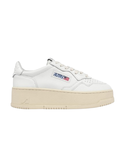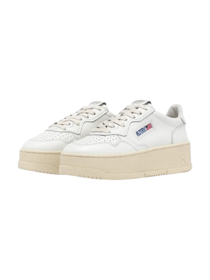 Sneakers bianche Medalist PTL WLL15 di Autry in pelle con punta tonda, design traforato, etichetta con logo su un lato, chiusura con lacci, contrafforte a contrasto e suola alta in gomma.