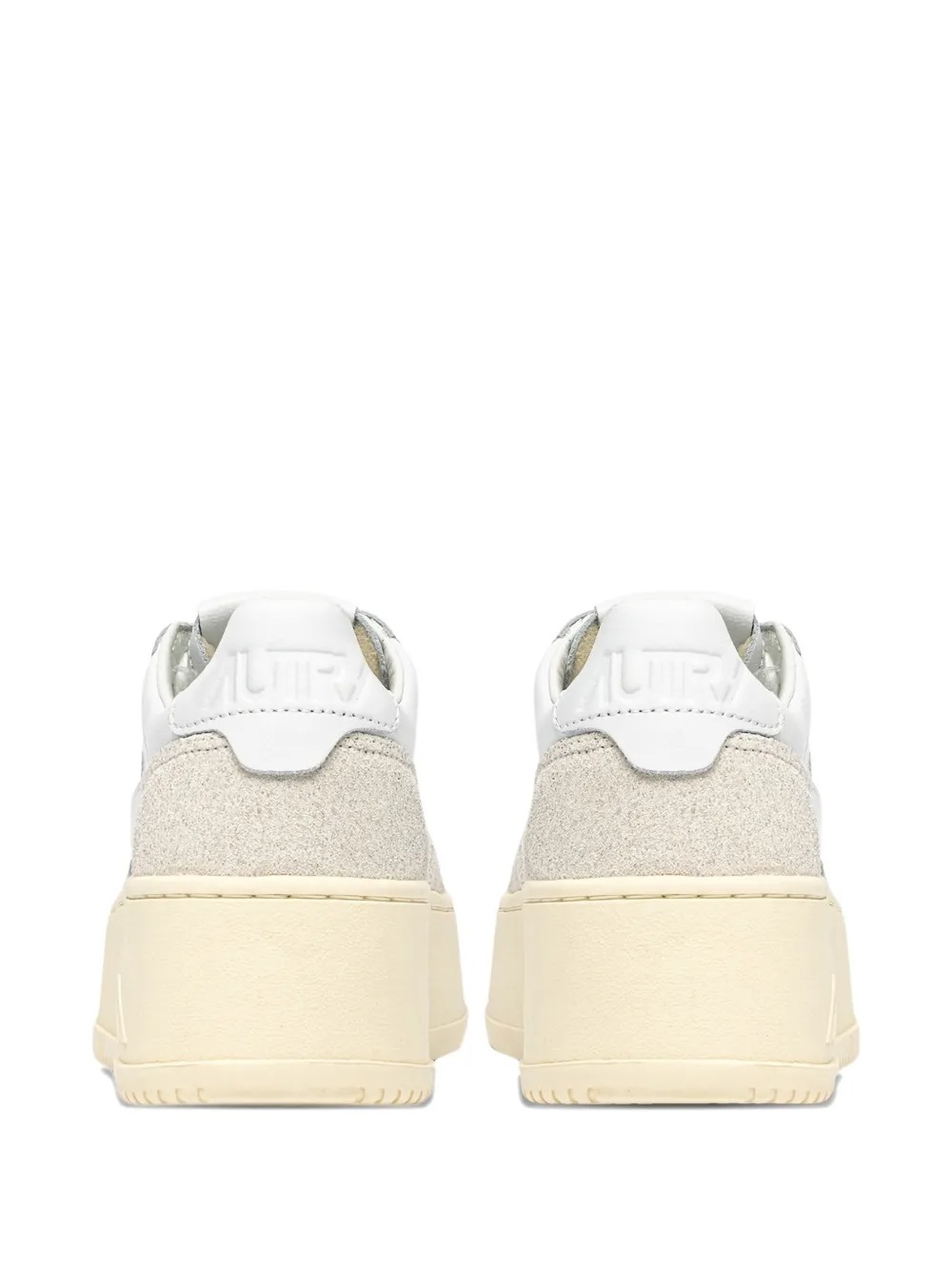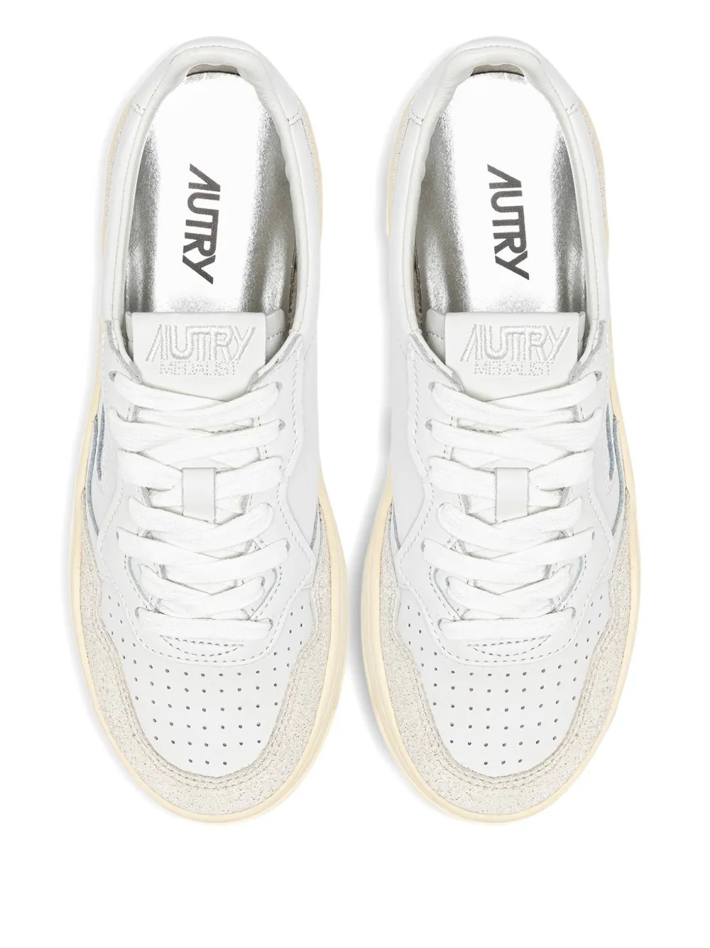 Sneakers bianche Medalist PTL WLPK01 di Autry in pelle con punta tonda, design traforato, etichetta con logo su un lato, chiusura con lacci, contrafforte a contrasto e suola alta in gomma.
