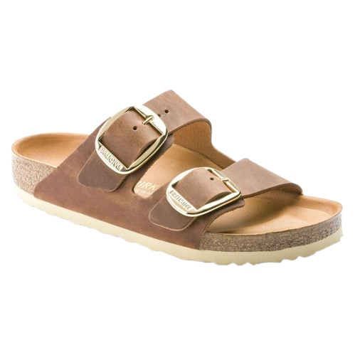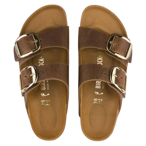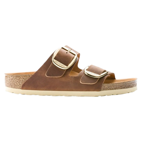 Sandali color cognac Arizona Big Buckle di Birkenstock in pelle scamosciata con punta aperta, face con fibbie in metallo e suola EVA.