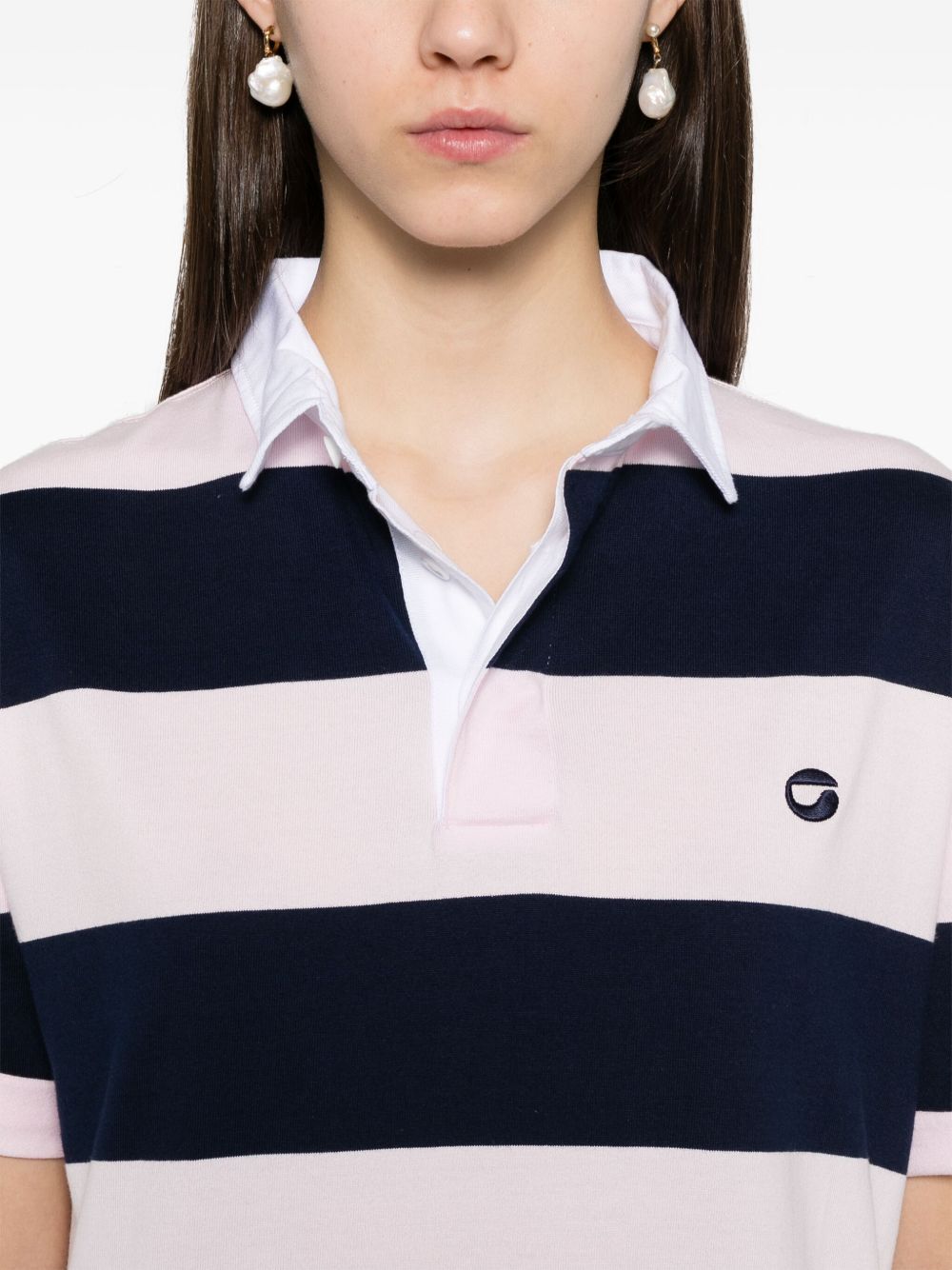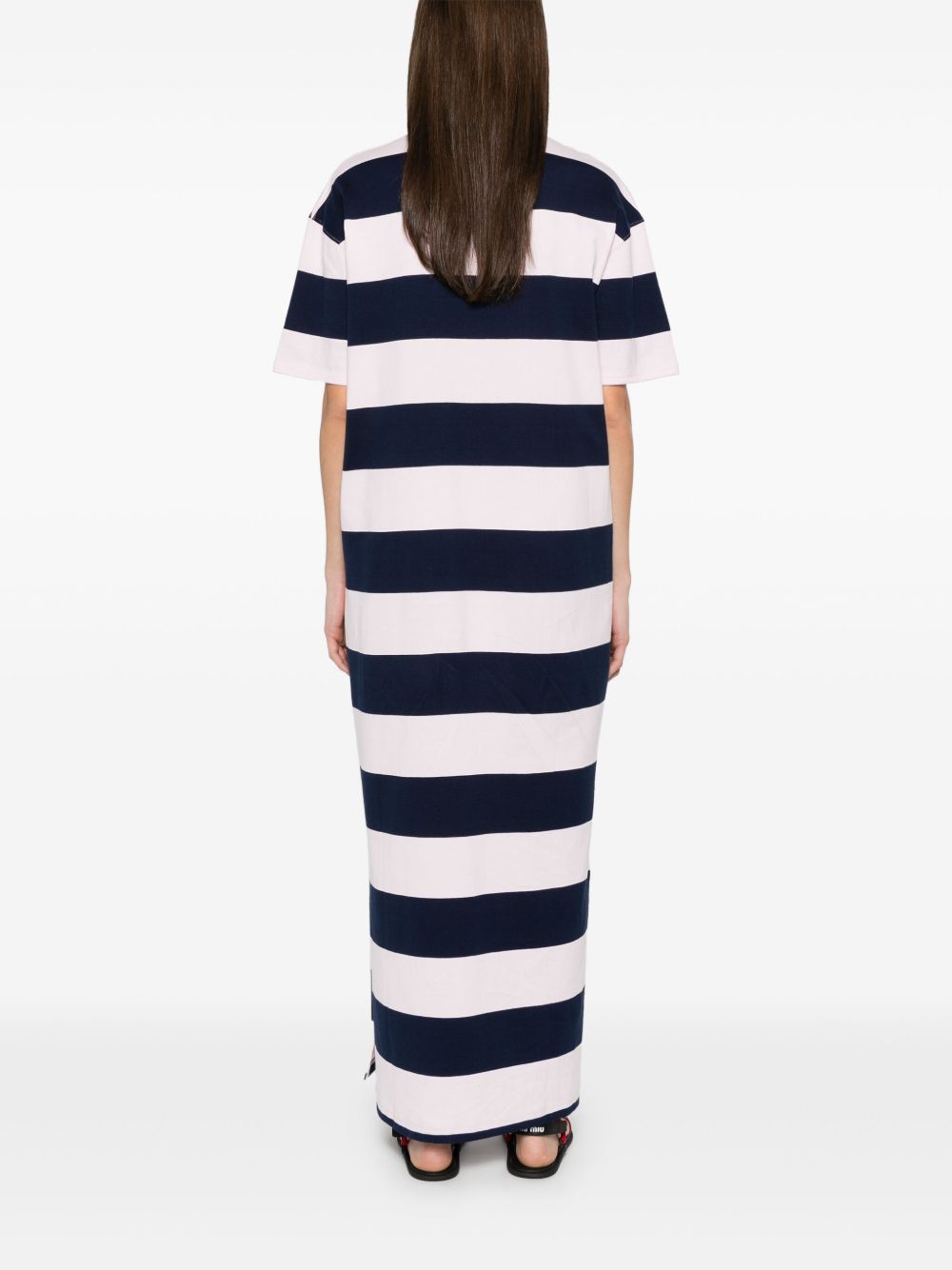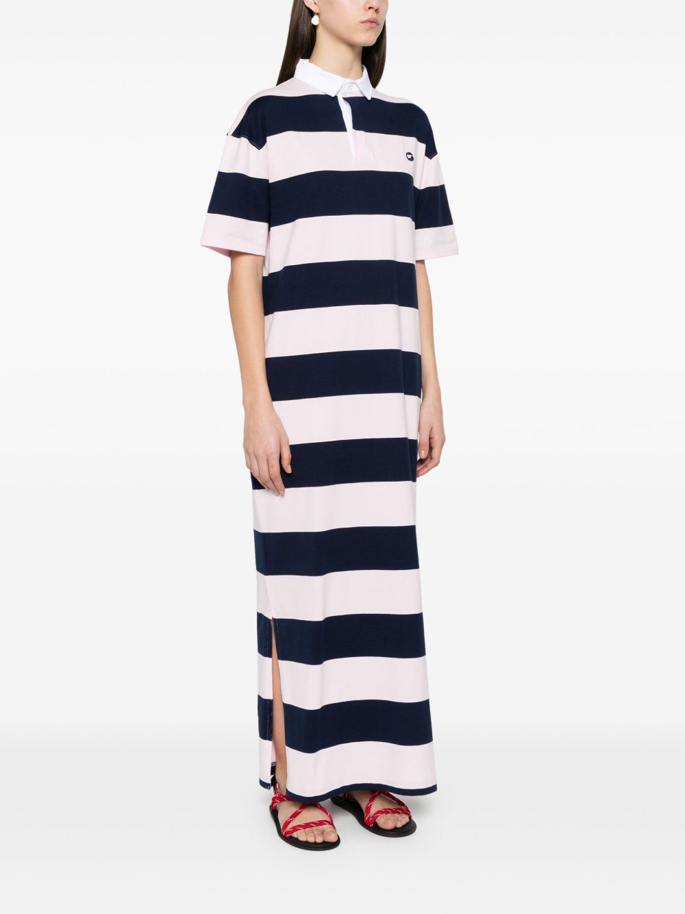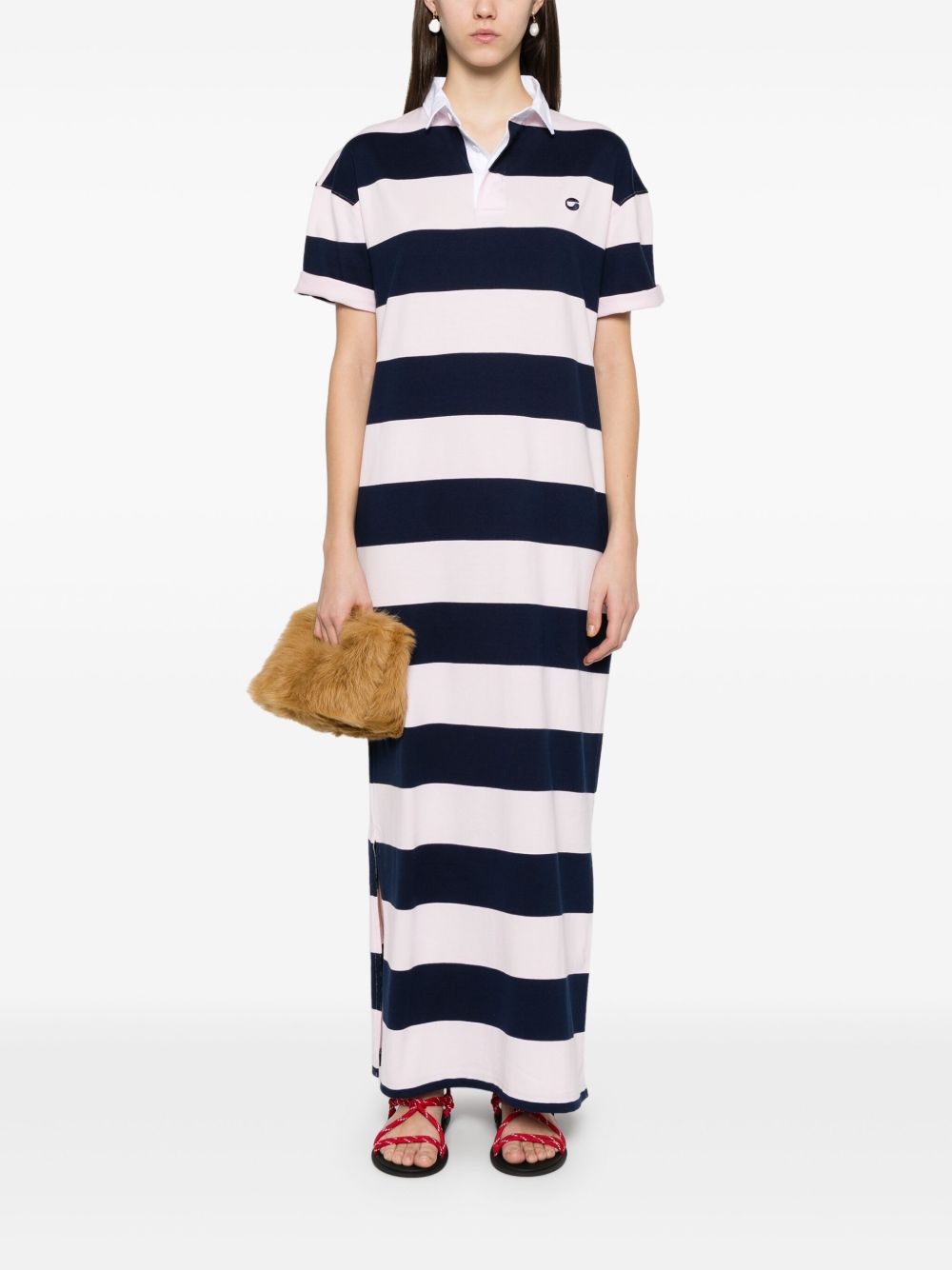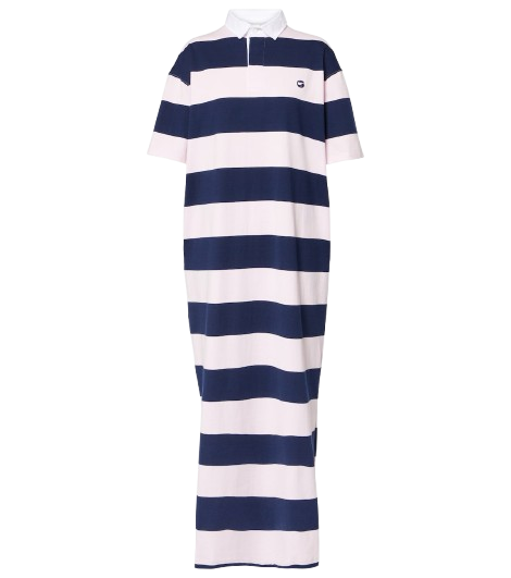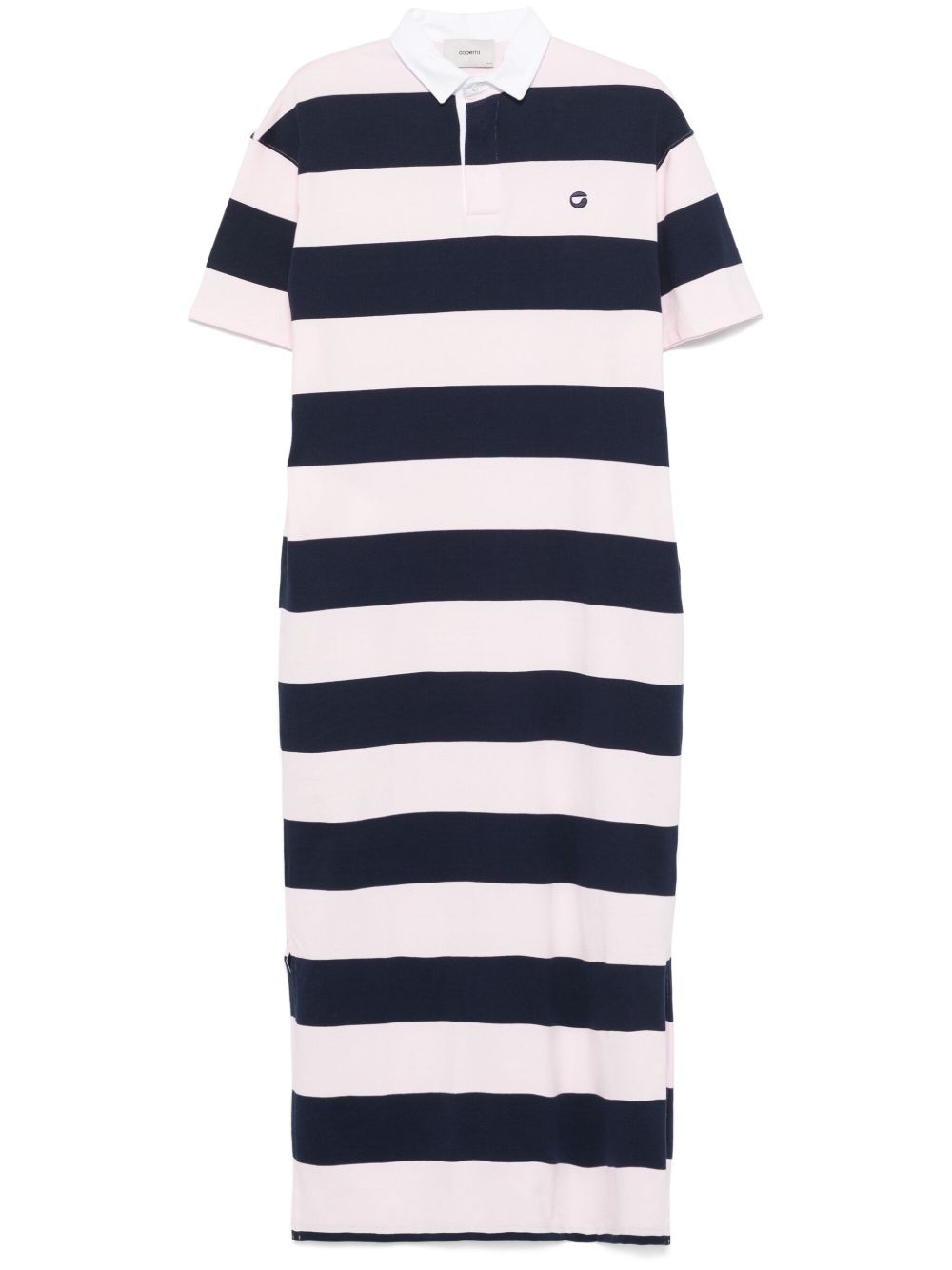 Abito lungo navy e rosa Striped Polo di Coperni in cotone con abbottonatura frontale corta, logo sul petto e maniche corte.