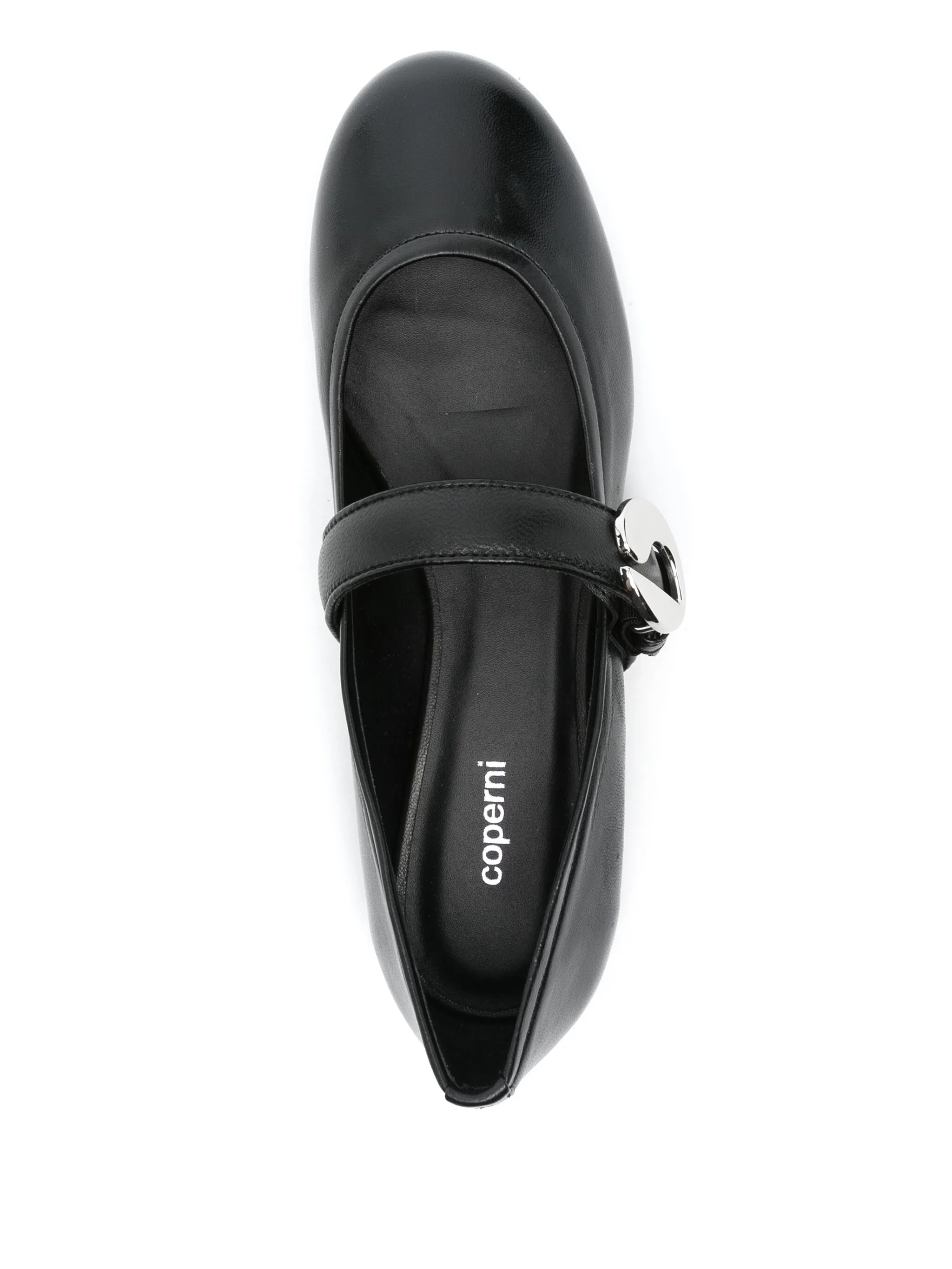 Ballerine nere Mary Jane di Coperni in pelle con fibbia con logo e suola piatta.