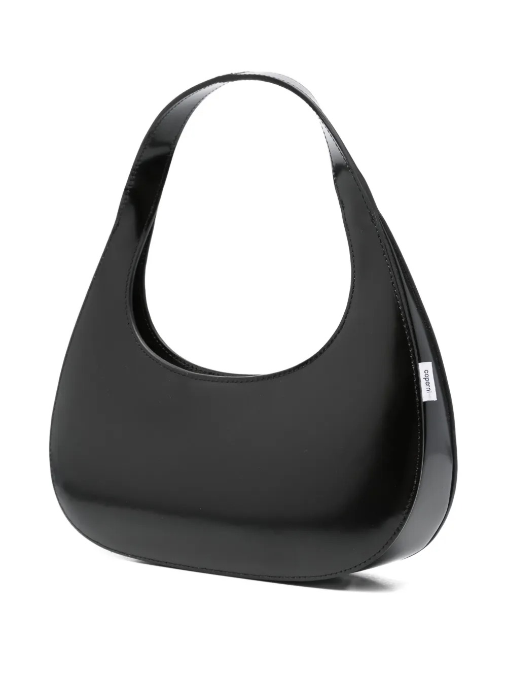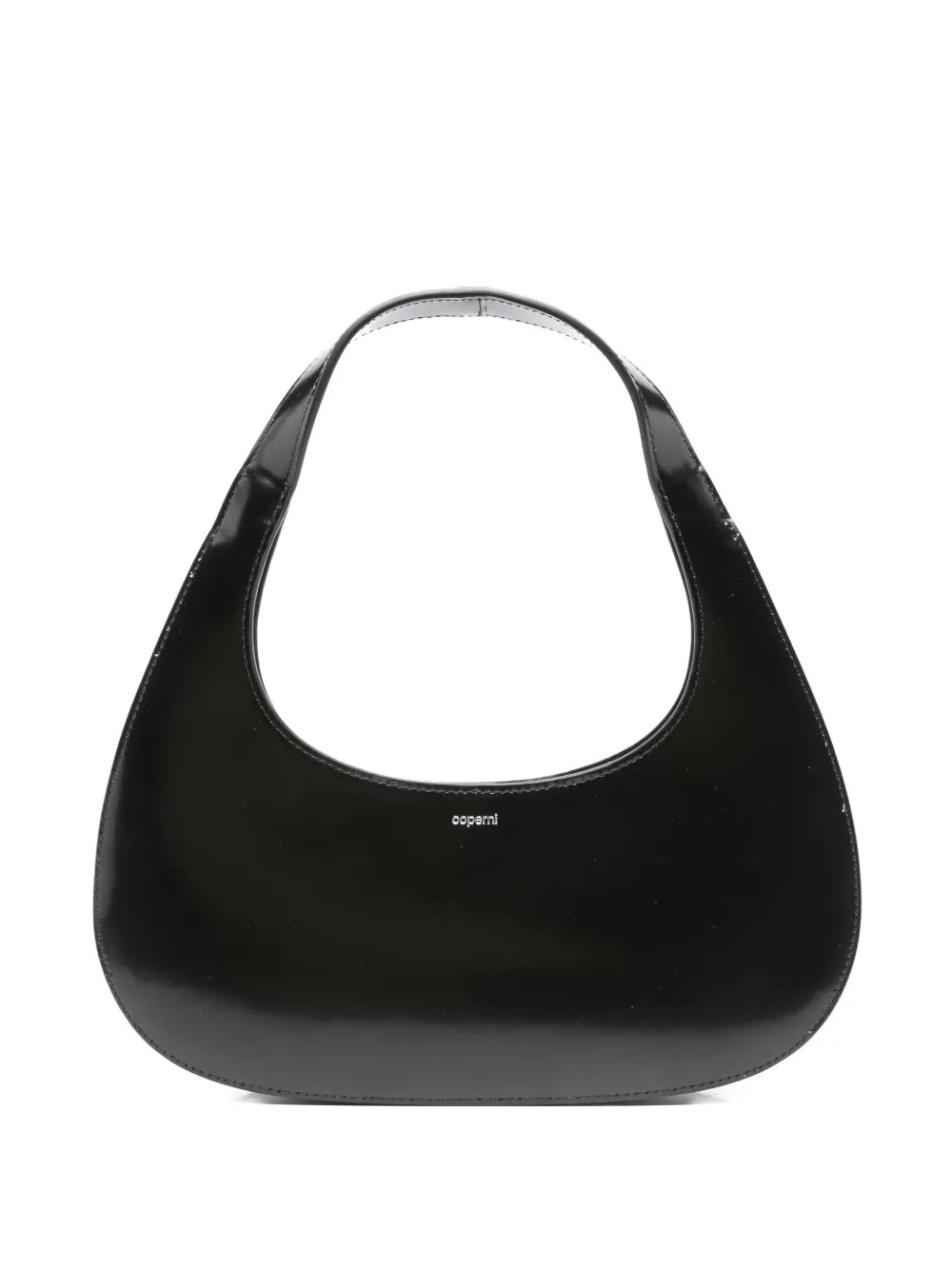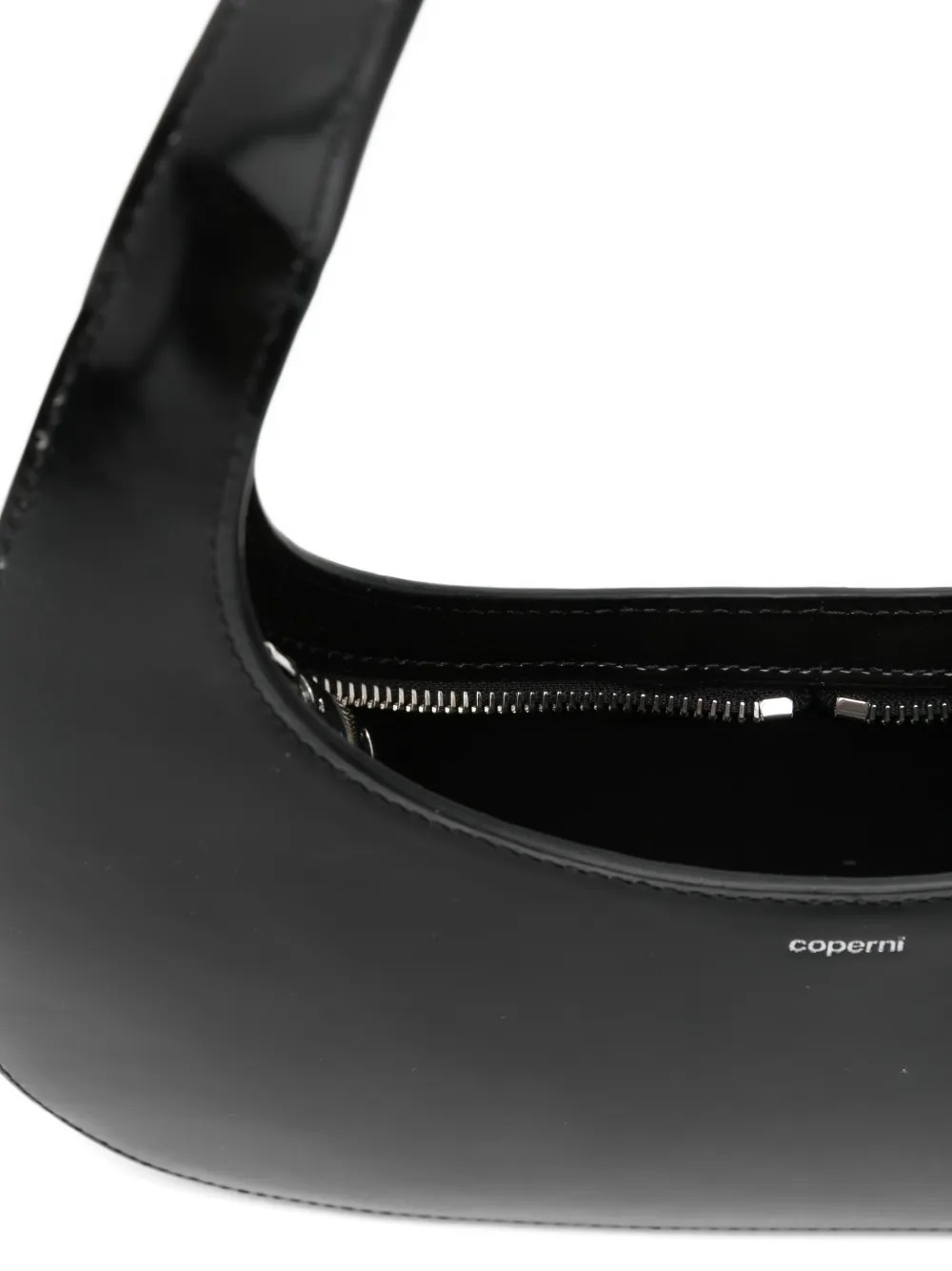 Borsa nera Slim Swipe Baguette in pelle con forma ovale, manico, chiusura con zip e marchio interno.