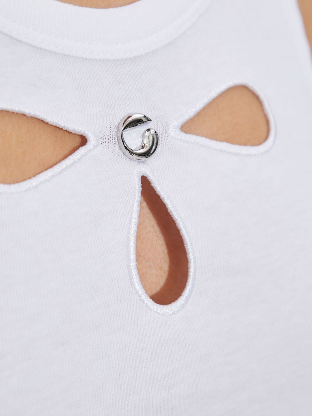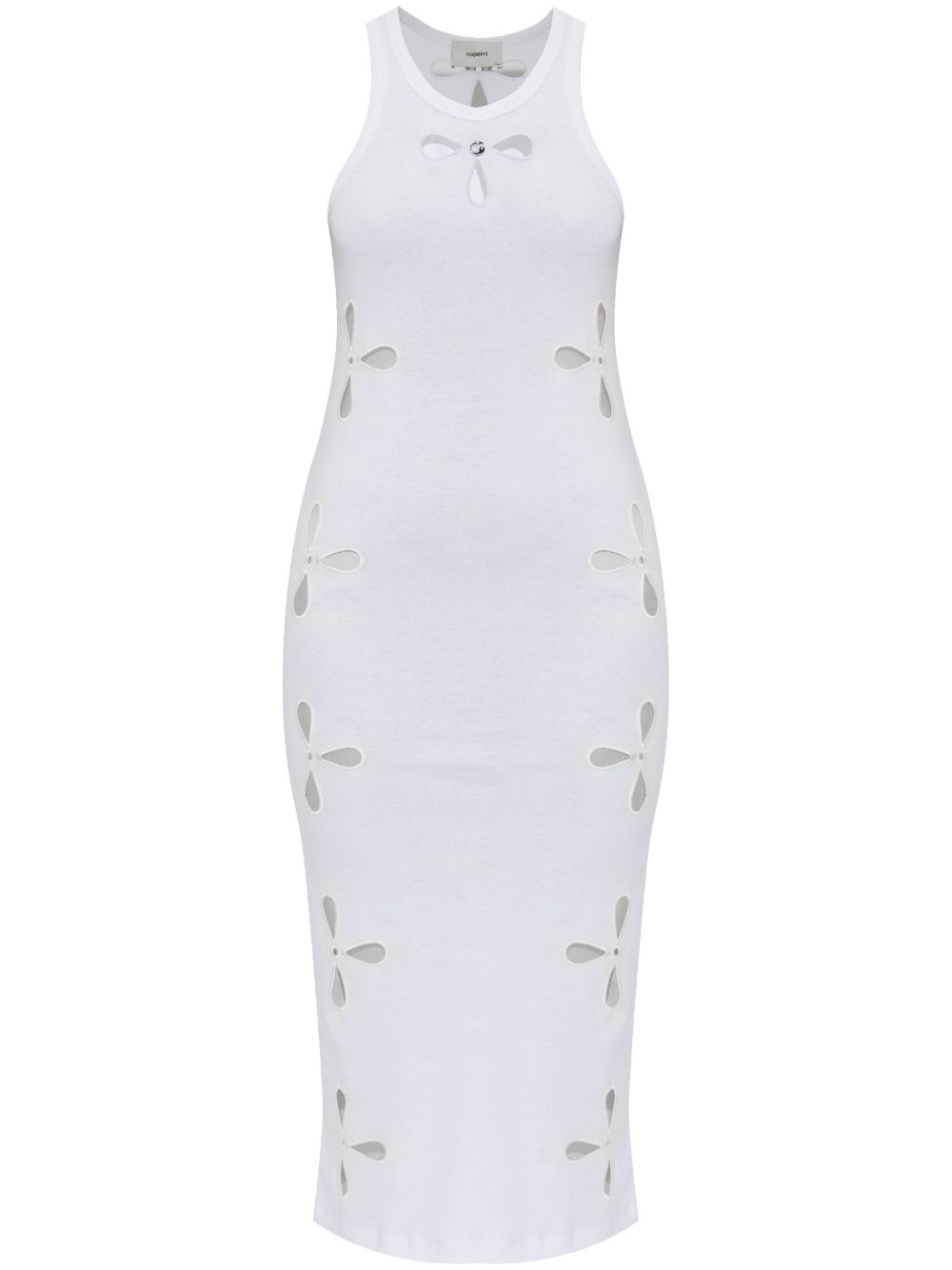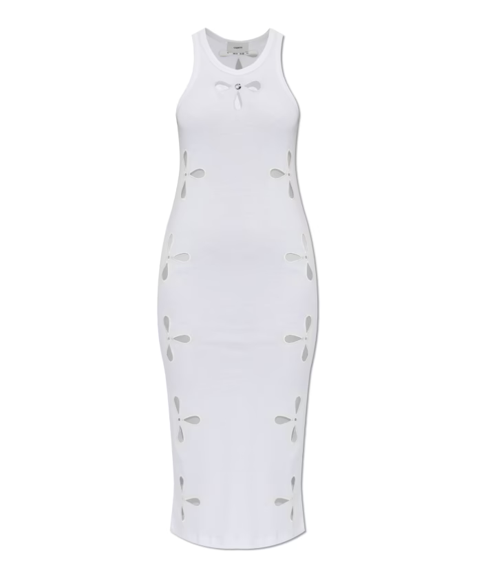Abito bianco Petal Embroidered Tank di Coperni in cotone con scollo rotondo, dettagli cut-out e orlo dritto.