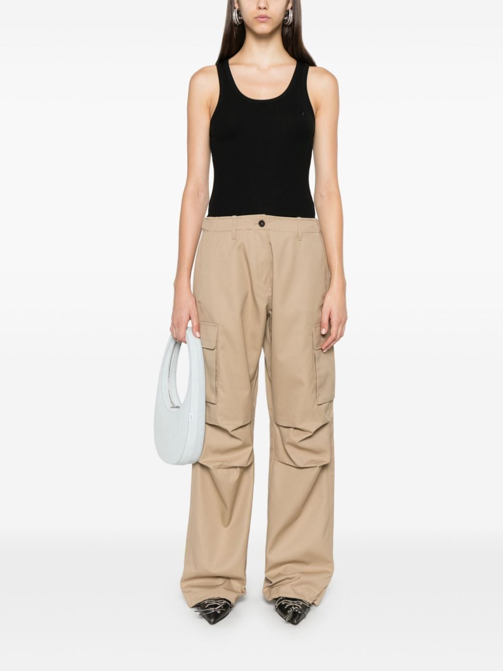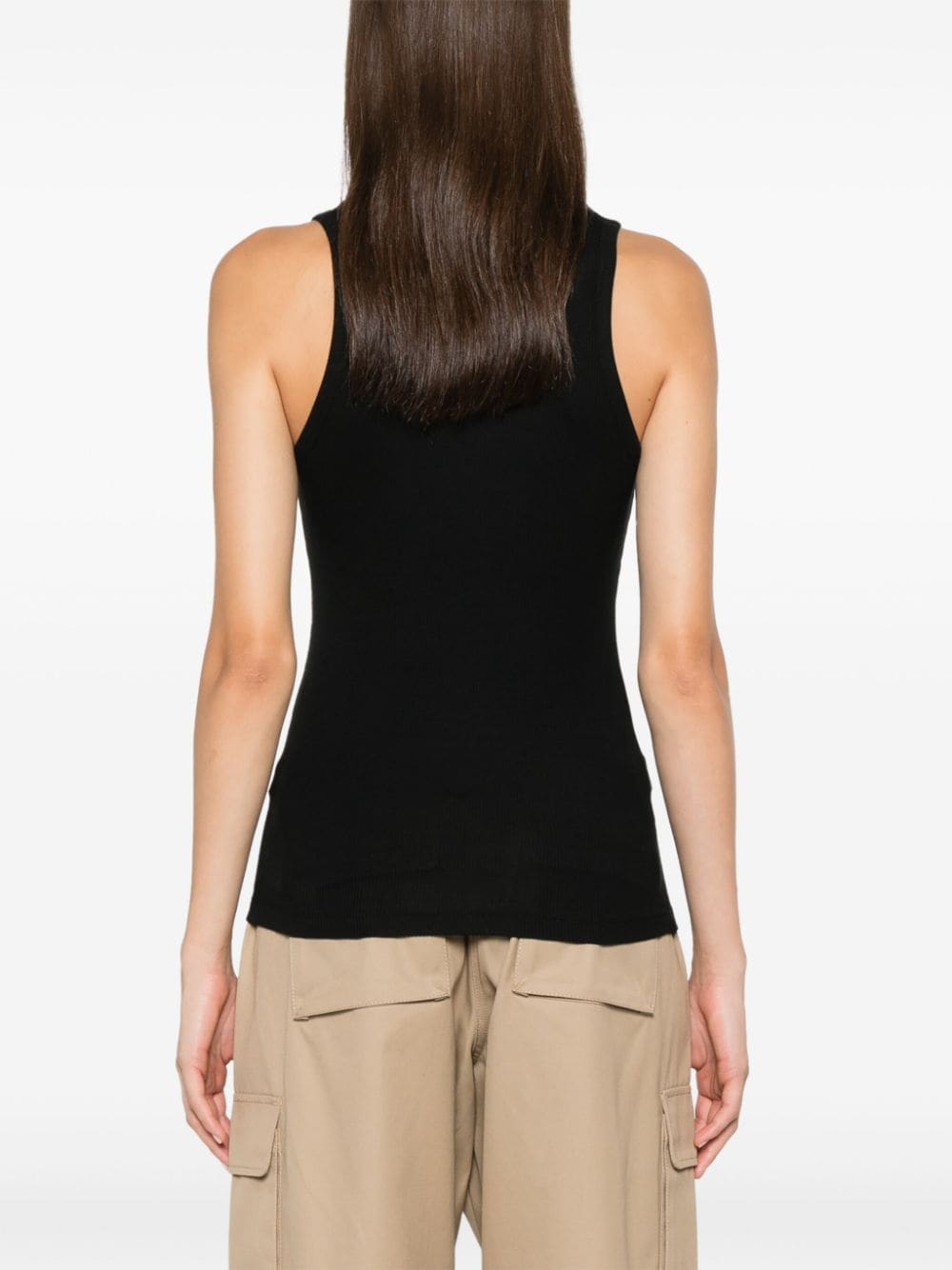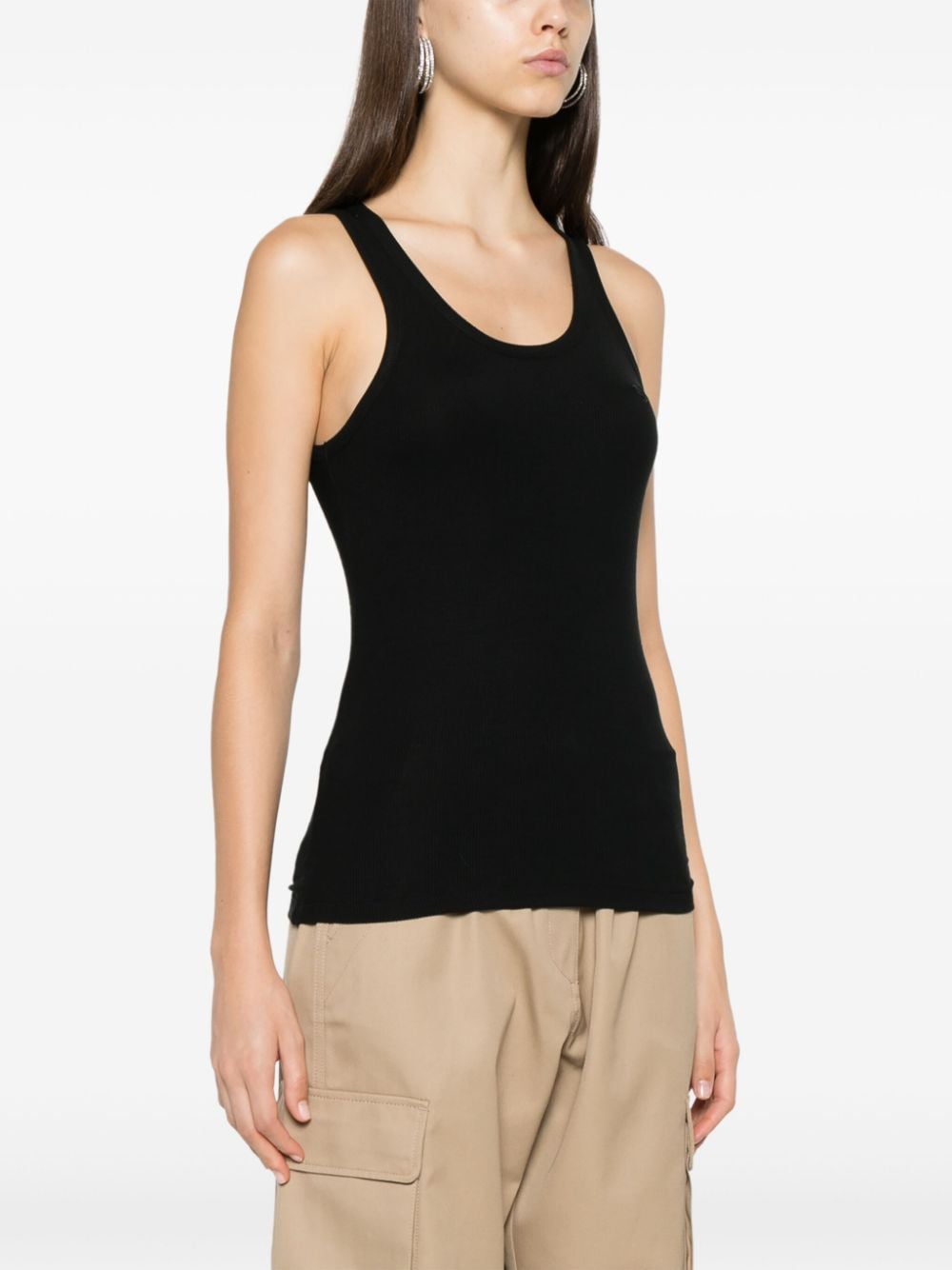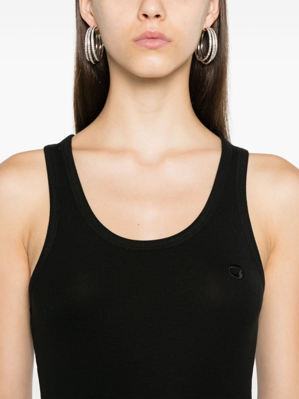 Top nero Rib logo di Coperni in cotone con scollo rotondo, spalline sottili e orlo dritto.