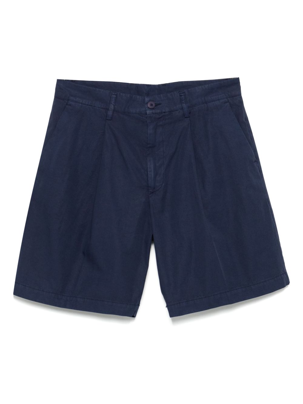 Pantaloncini blu di Costumain in cotone con chiusura con zip nascosta e bottone, passanti, due tasche diagonali laterali e tasca posteriore con patta.