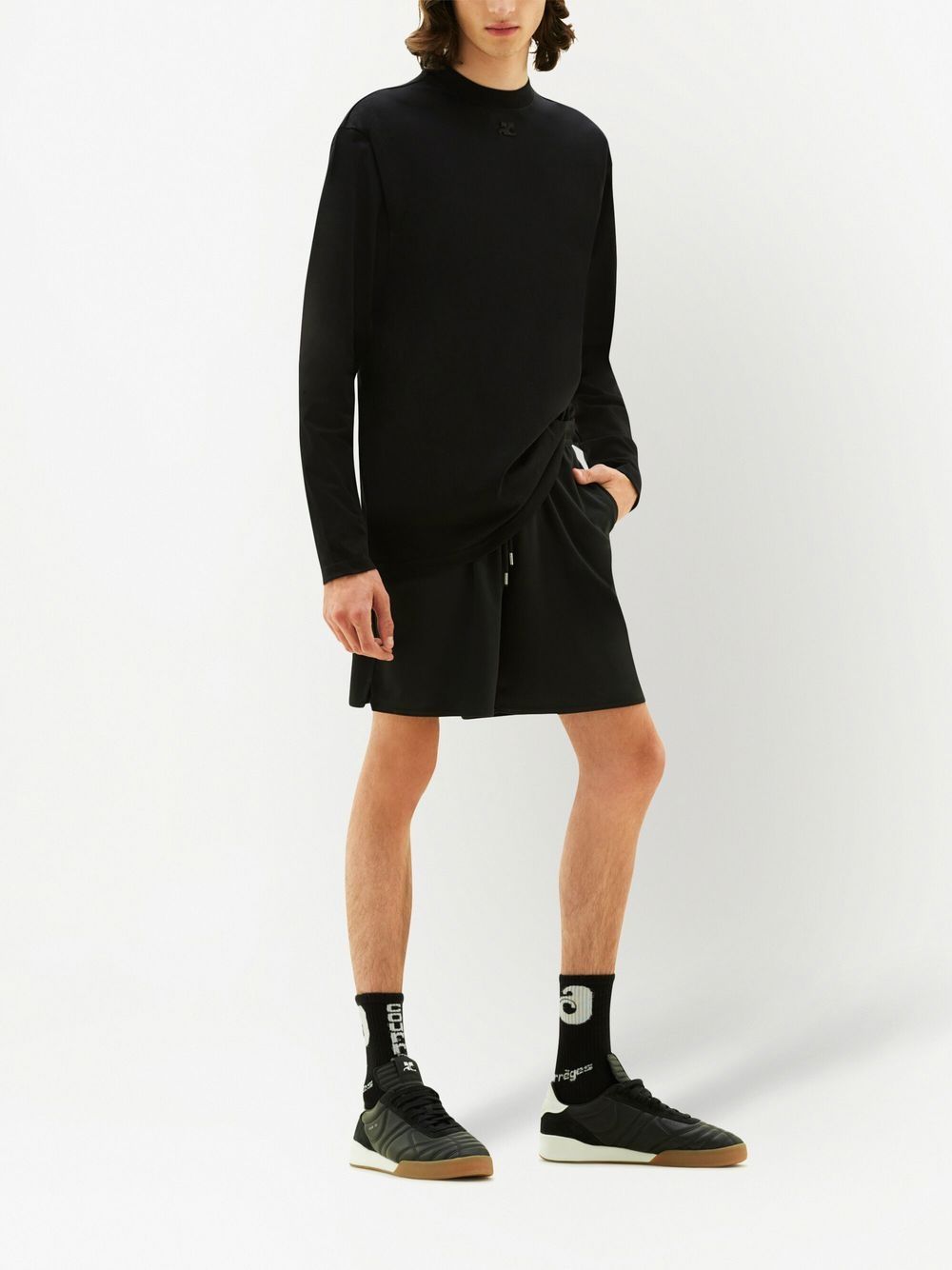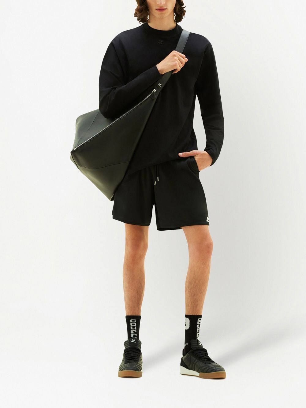 Bemuda neri Sport Lycra Football di Courrèges in poliestere con logo laterale, tasche laterali e tasca posteriore con zip.