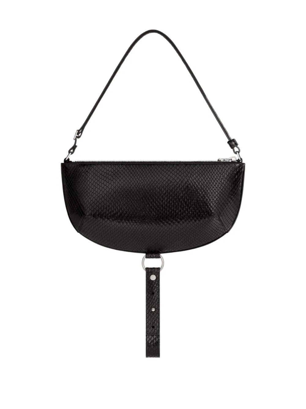 Borsa nera Holy Eclipse Viper di Courrèges in pelle con design in rilievo, tracolla rimovibile, logo goffrato e manico.
