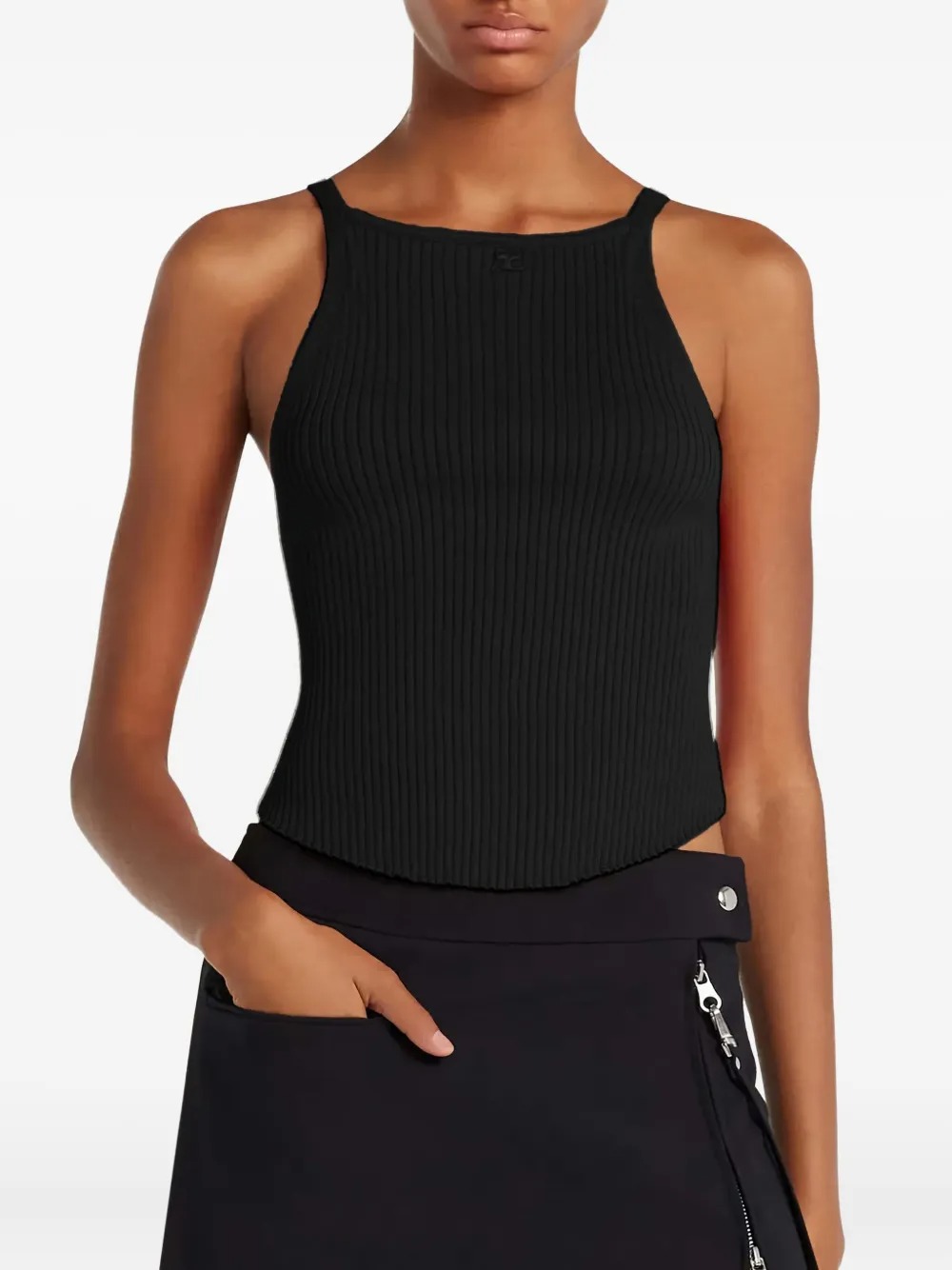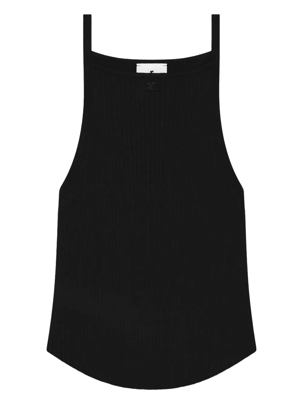 Top rosso Circle Rib Knit di Courrèges in viscosa con design senza maniche, orlo arrotondato e trama a coste.
