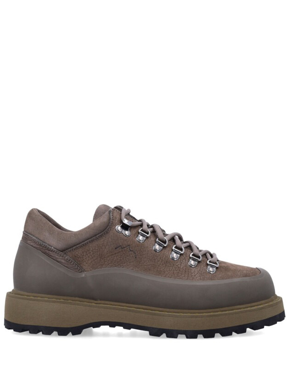 Stivaletti smog leather Cornaro Gomma di Diemme in pelle con trama martellata, chiusura frontale con lacci, design a inserti, linguetta con logo inciso, logo laterale inciso, punta in gomma, punta tonda, soletta in pelle con logo e suola in gomma antiscivolo.