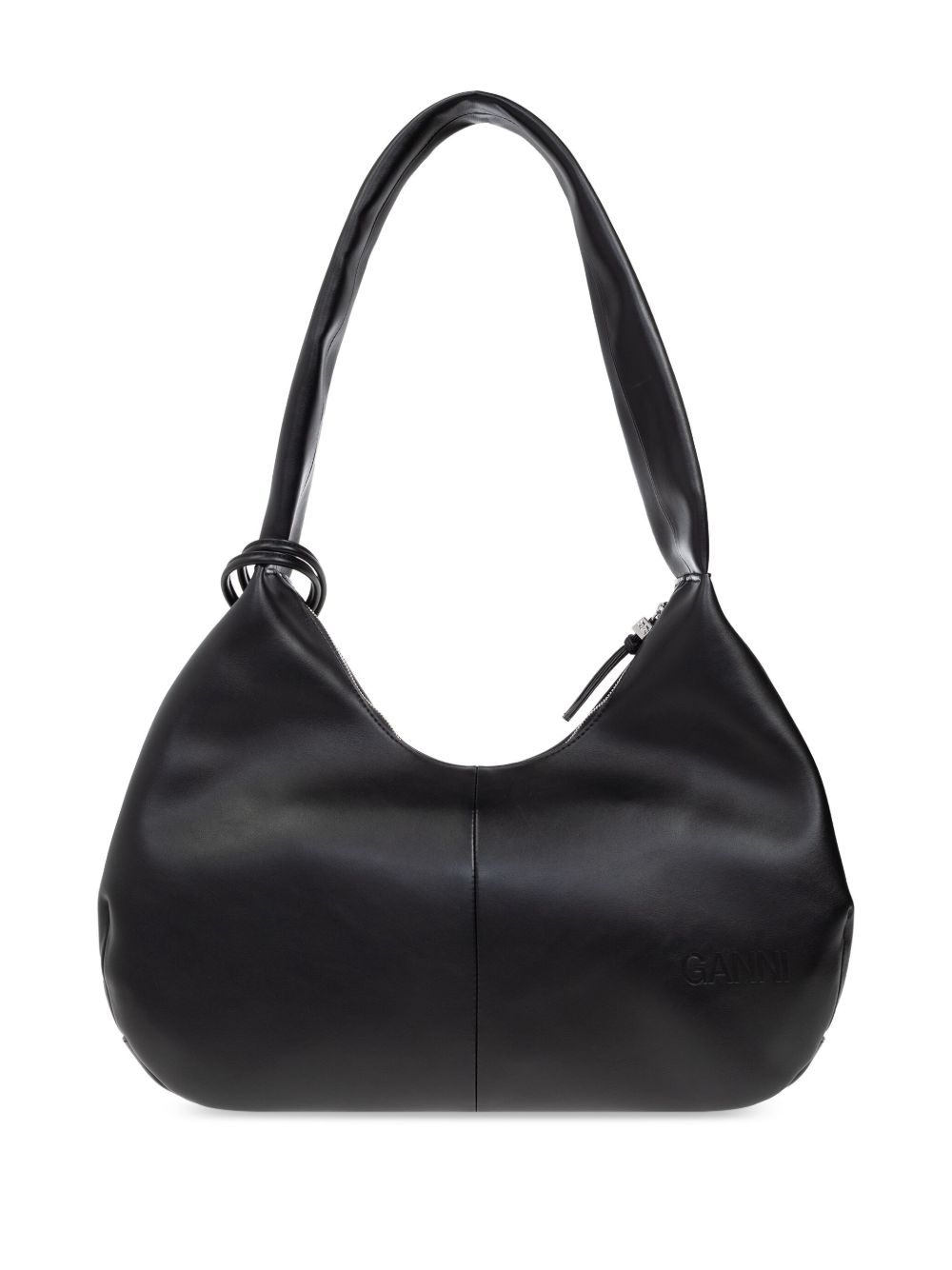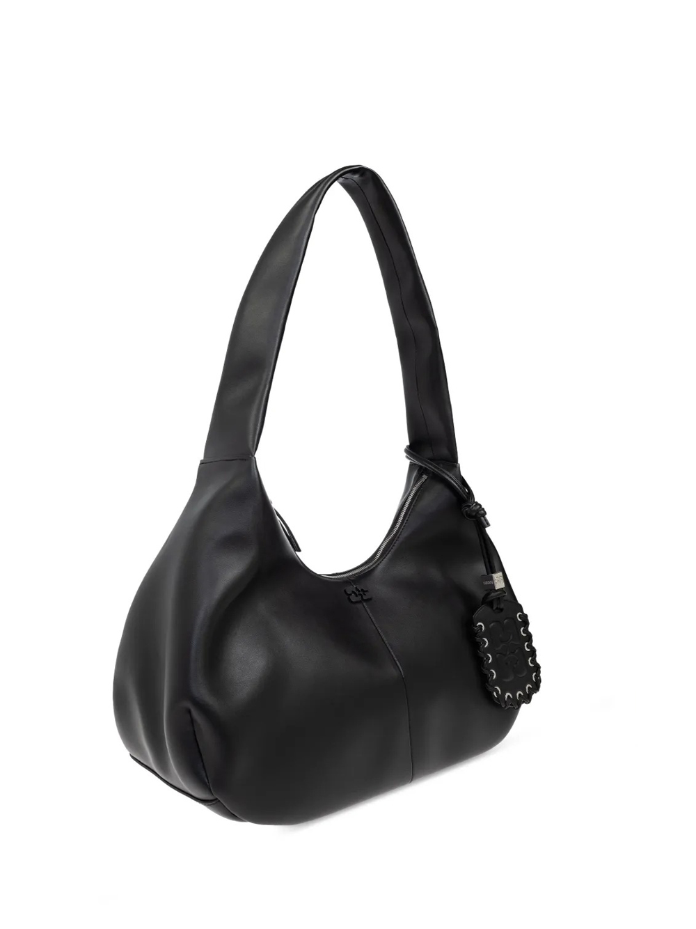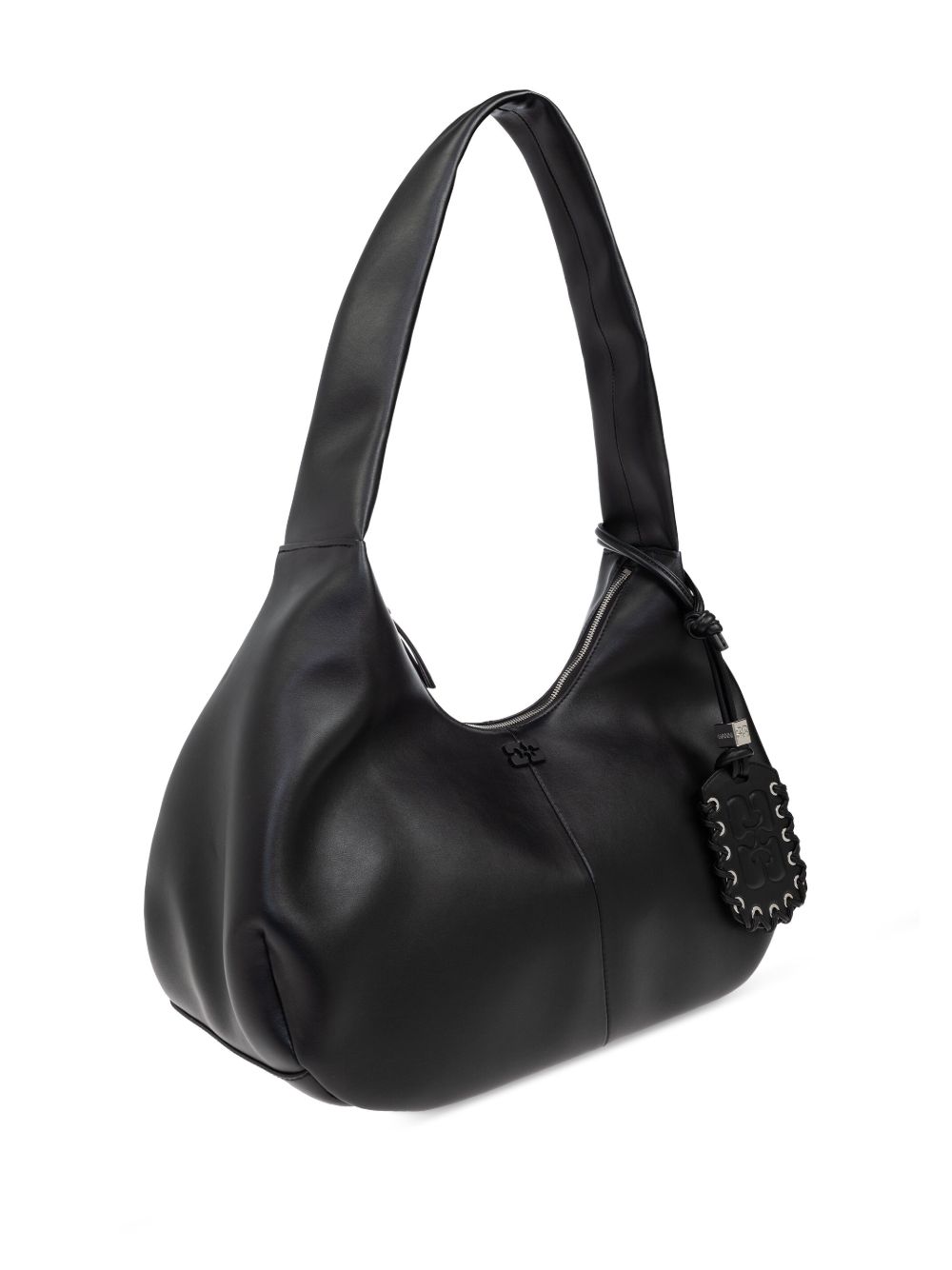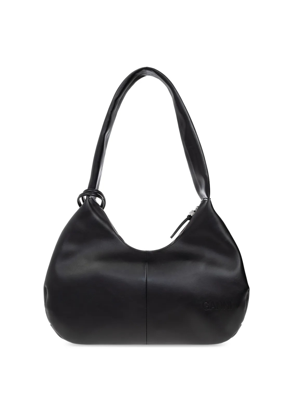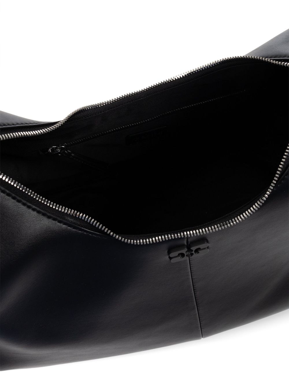 Borsa nera Hobo Medium di Ganni in pelle con design morbido, portachiavi con logo rimovibile, dettaglio con cuciture curve e tracolla.