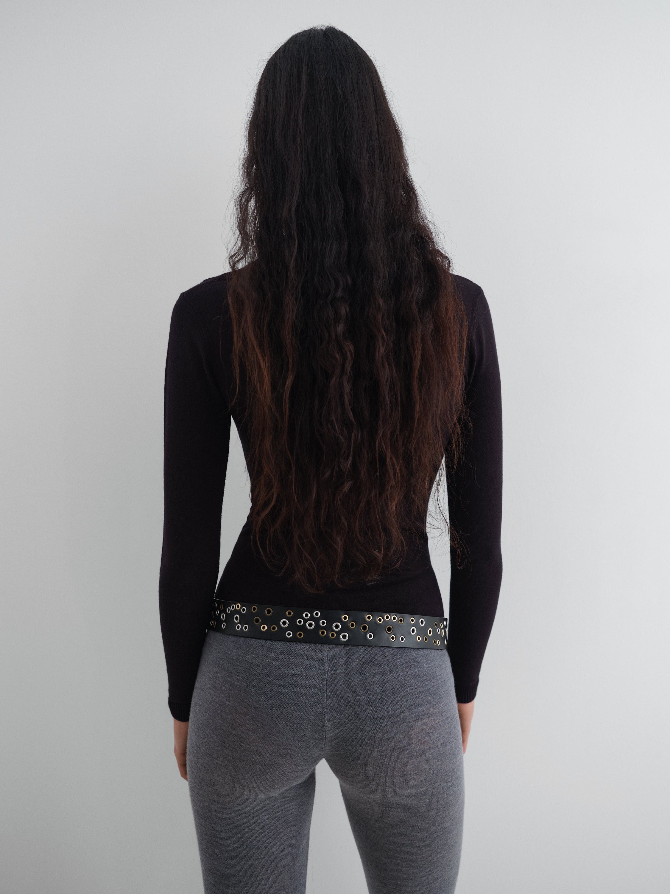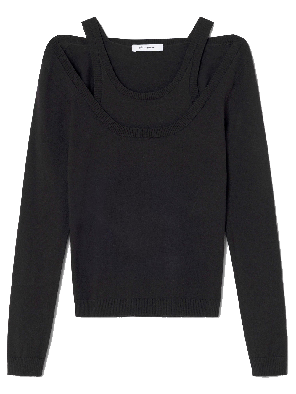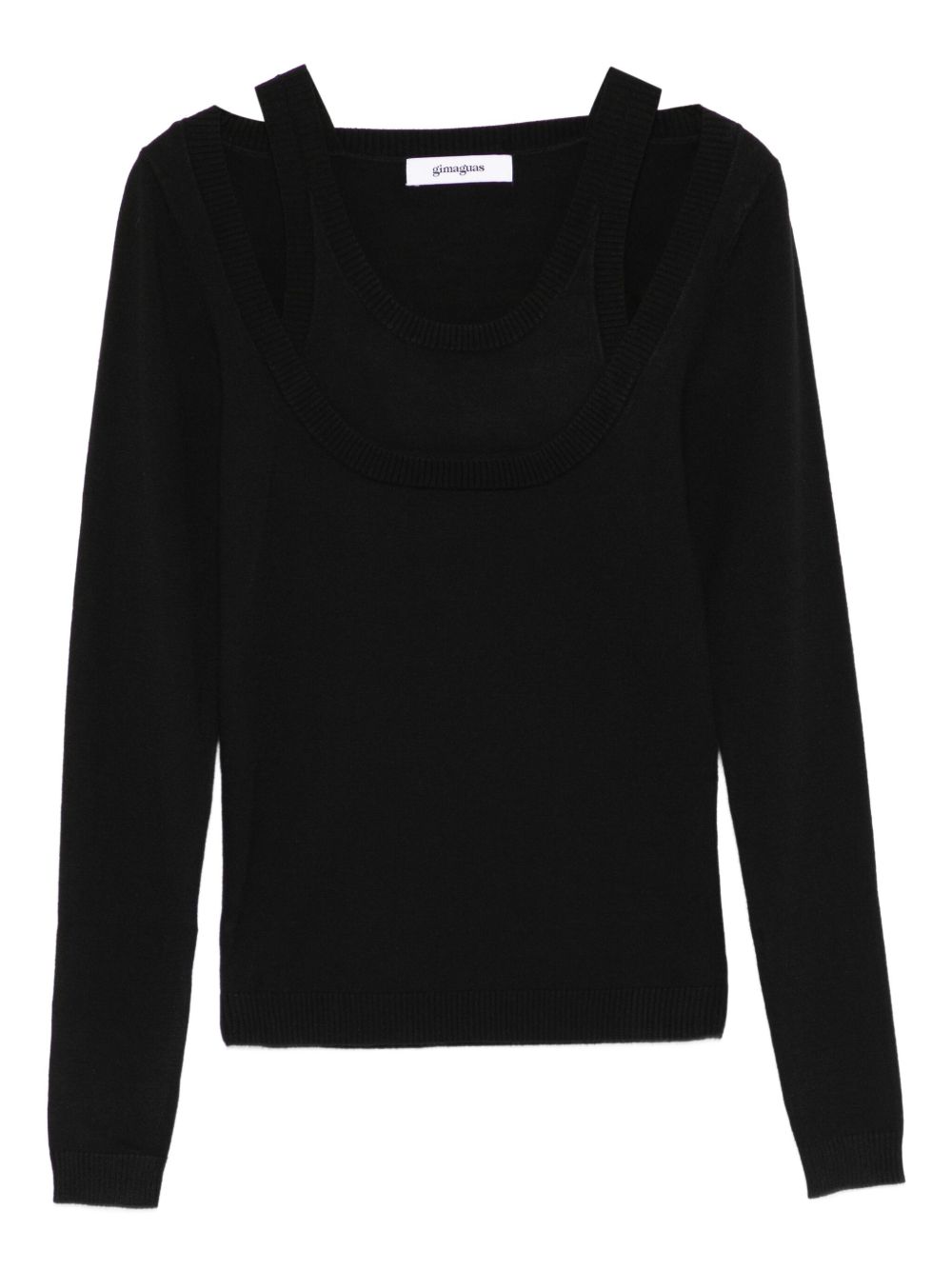 Maglia nera Etoile Jumper di Gimaguas in viscosa con doppio layer, bretelle sottili, manica lunga e orlo dritto.