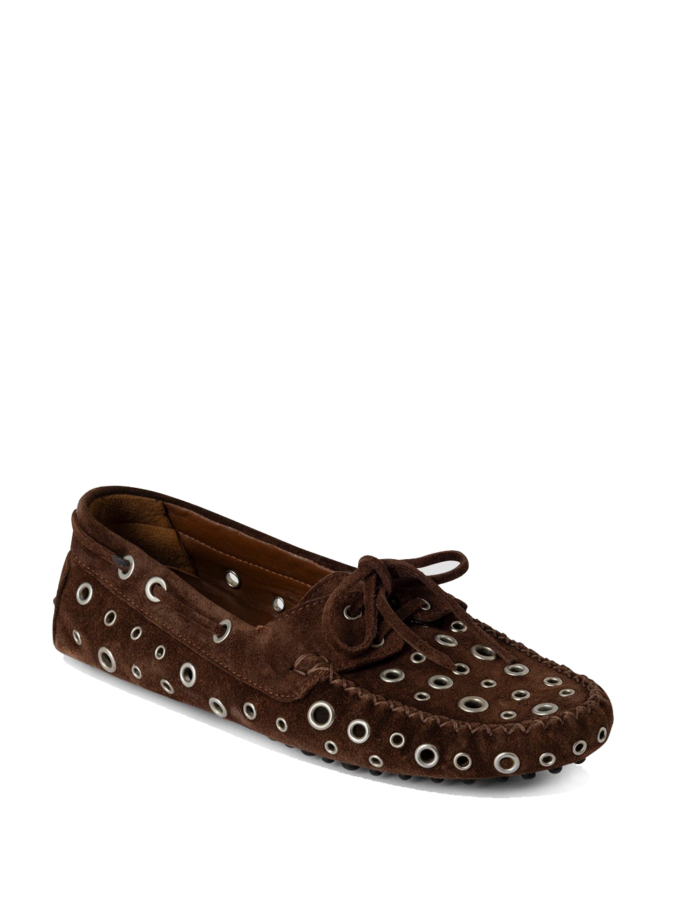 Mocassini marroni Car Eyelets di Gimaguas in pelle con lacci, dettagli con occhielli e suola dentellata.