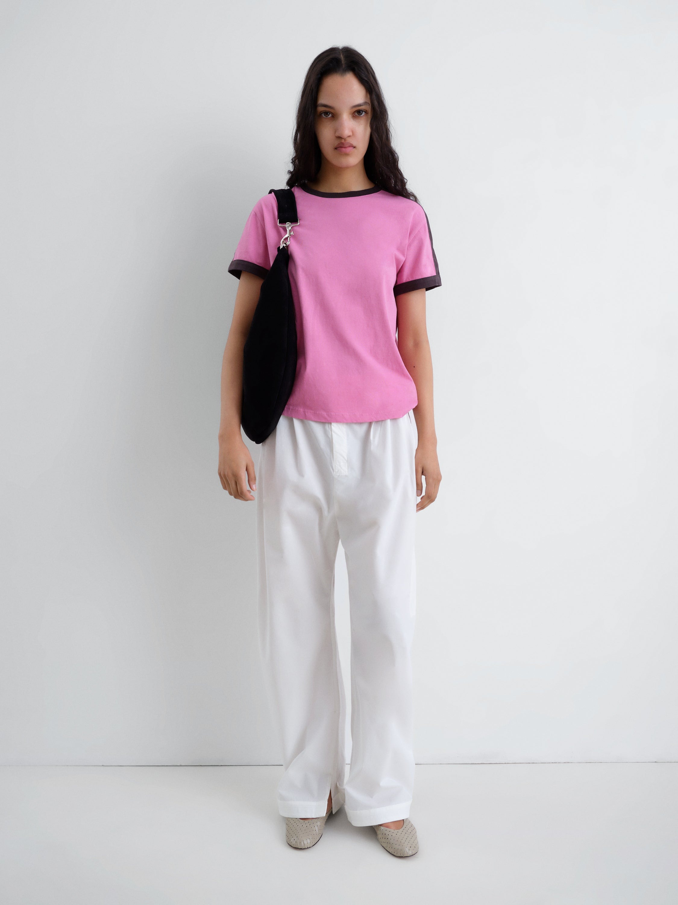 T-shirt rosa Diego di gimaguas in Cotone con scollo rotondo, manica corta e orlo dritto.