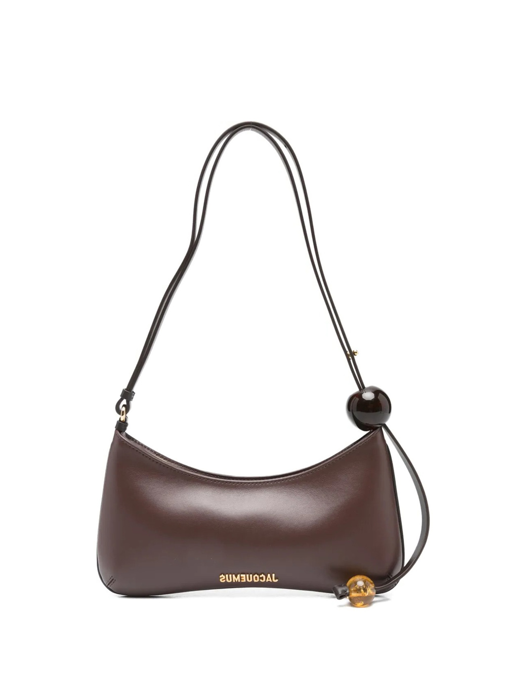 Borsa marrone Le Bisou Perle di Jacquemus in pelle con silhouette ondulata, chiusura con zip, tasca interna, applicazione con logo color oro, tracolla a contrasto e dettaglio perla.