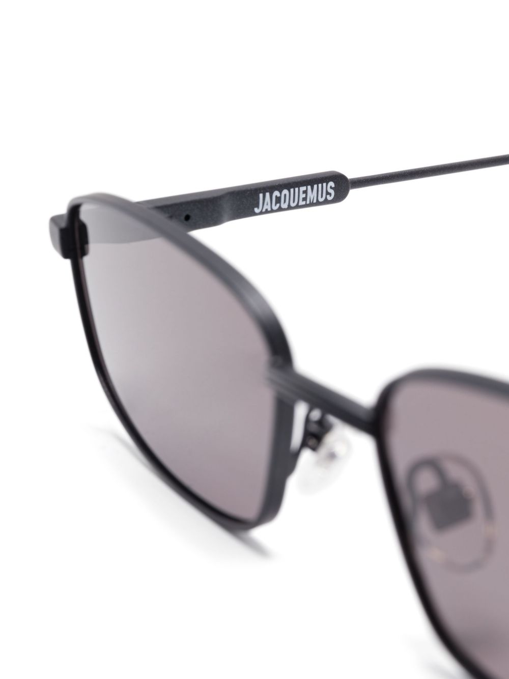 Occhiali da sole neri Sera di Jacquemus in metallo con montatura a giorno, lenti colorate e aste curvate.