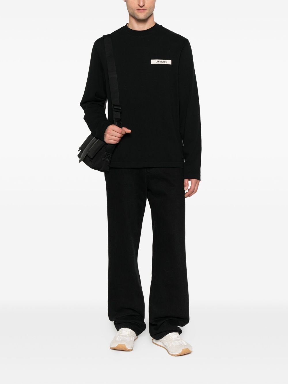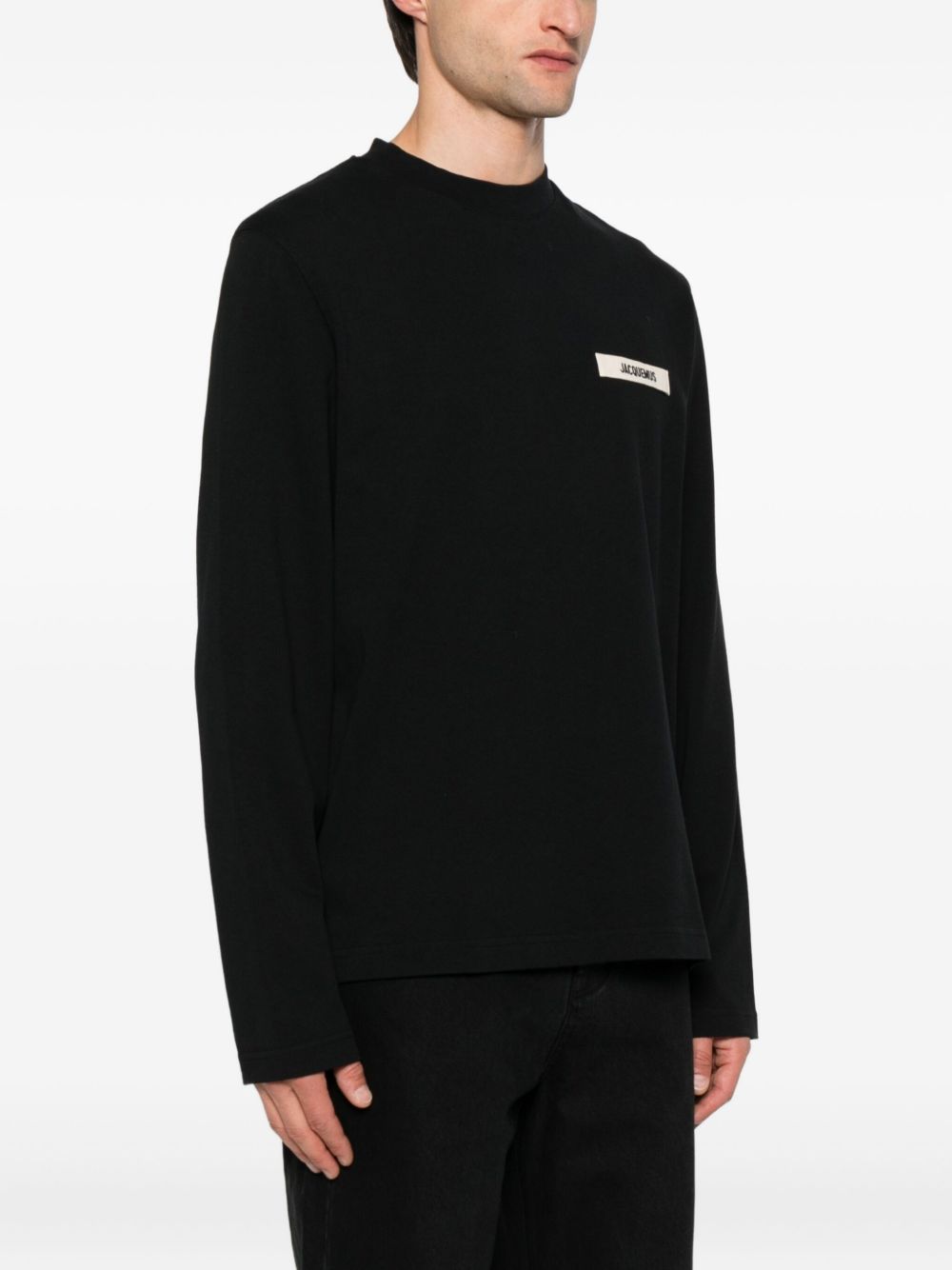 T-shirt nera Le T-shirt Gros Grain di Jacquemus in cotone con gircollo, applicazione con logo e orlo dritto.