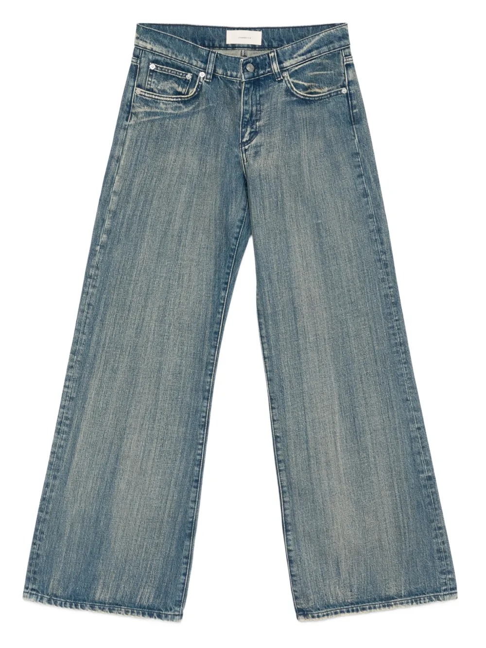 Jeans blu Kyoto di Jeanerica in cotone con vita con passanti, chiusura frontale con bottoni e zip, gamba ampia e orlo dritto.