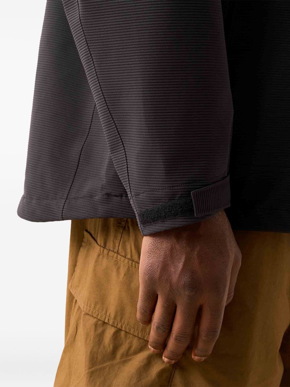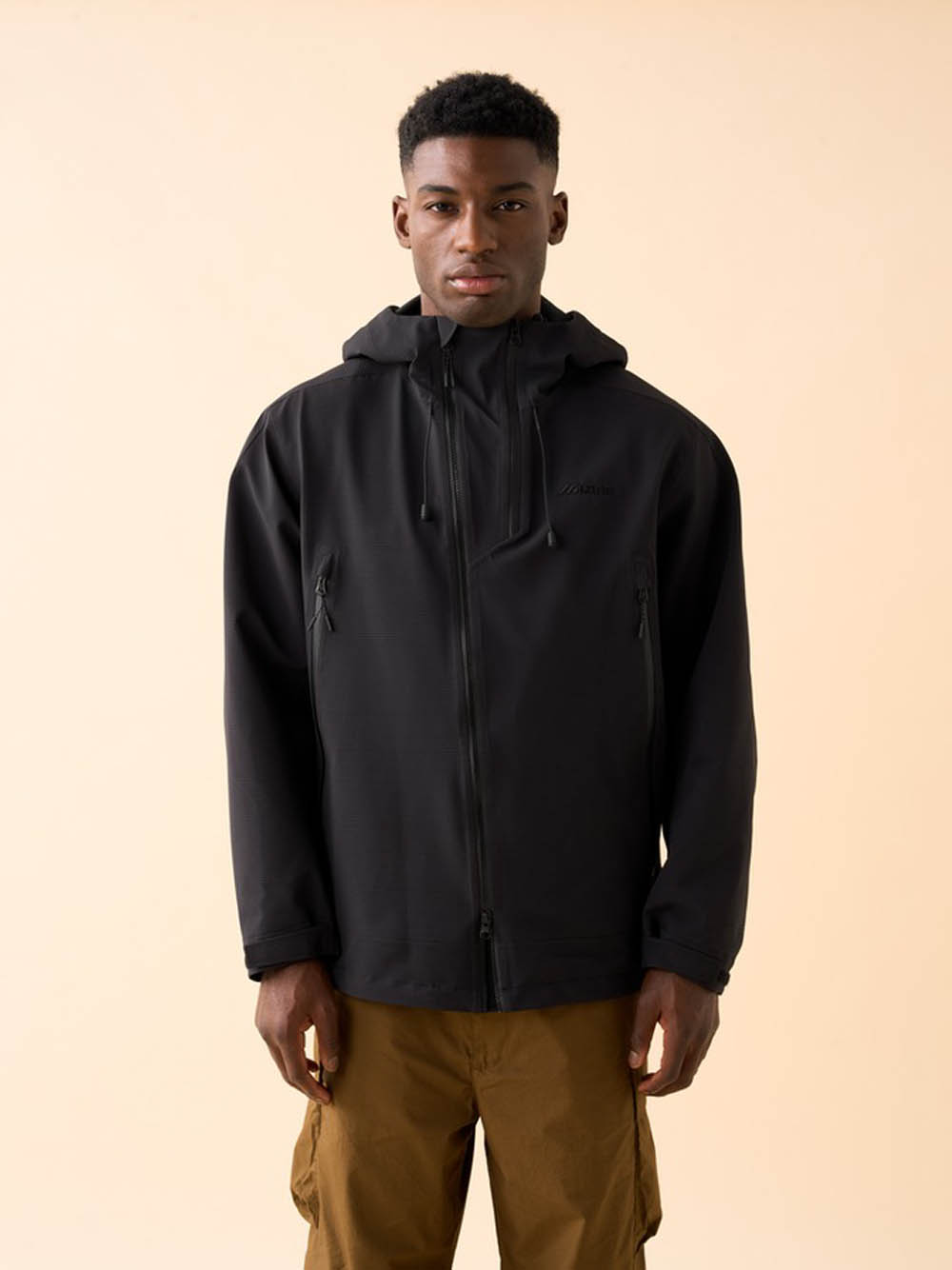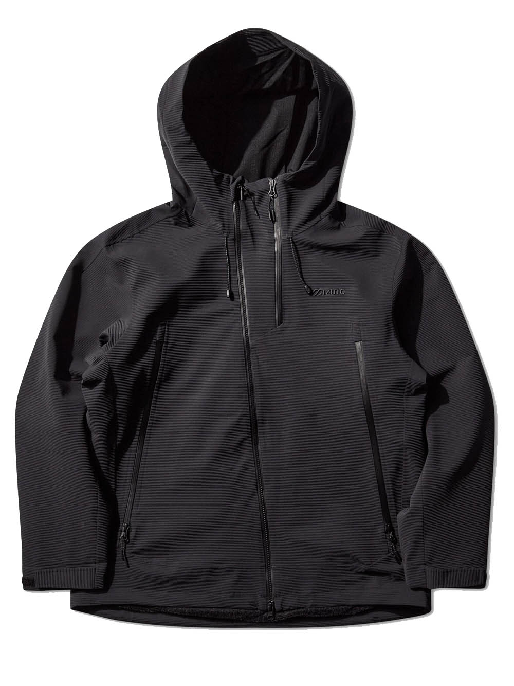 Giacca nera Tech Termal Mesh Jacket di Mizuno in poliestere con cappuccio con coulisse, chiusura frontale con zip e tasche laterali.