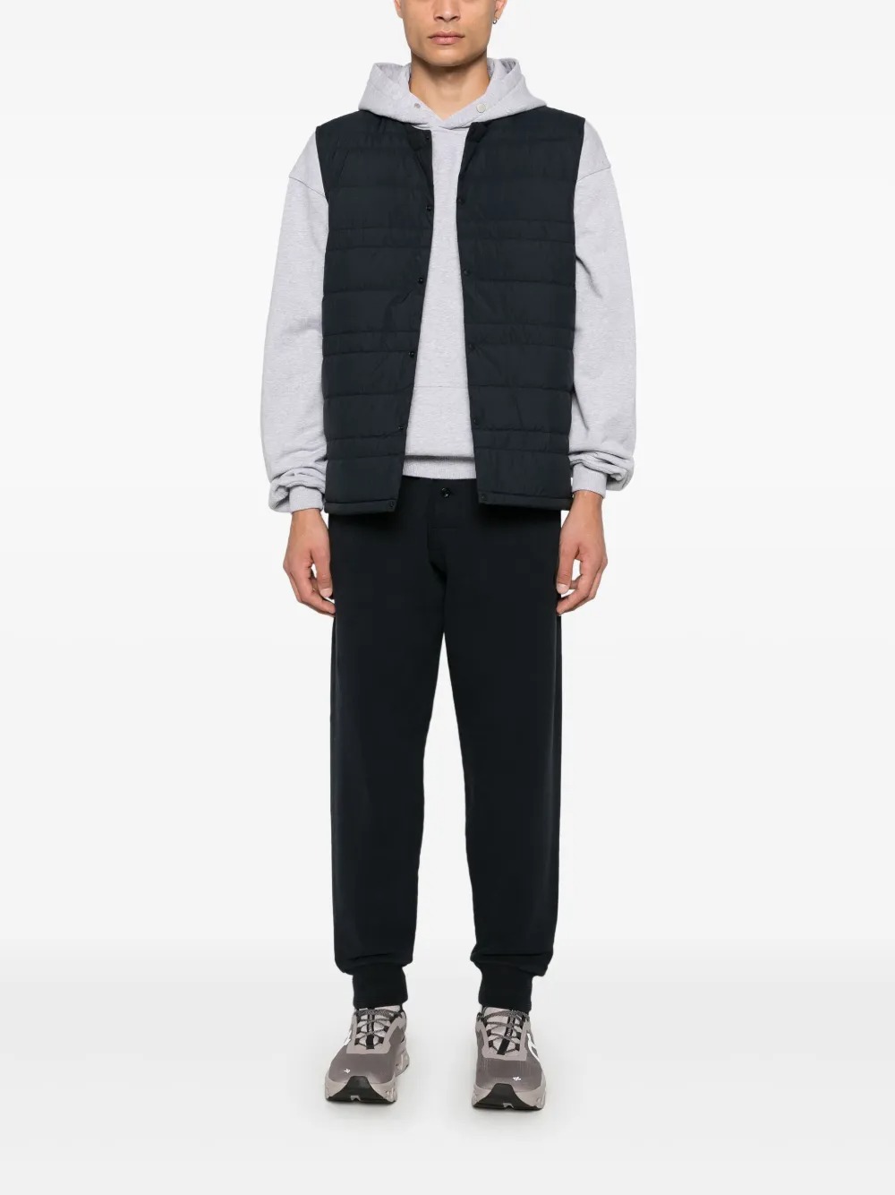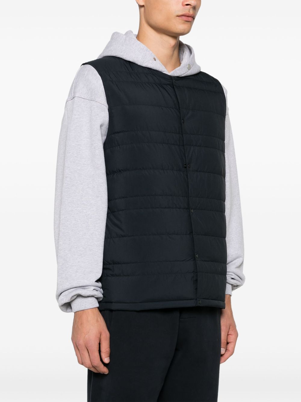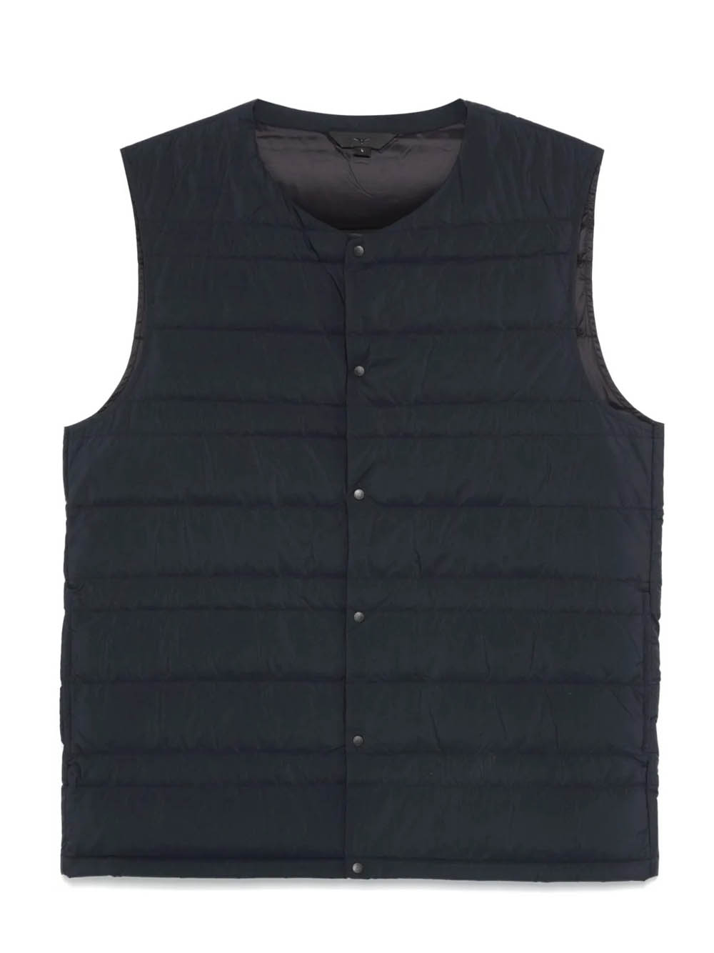 Gilet nero Lightweight di Mizuno con mbottitura in piuma d'oca, design imbottito, design trapuntato, chiusura frontale con abbottonatura a pressione, design senza colletto, senza maniche, due tasche laterali a filetto, fodera integrale e orlo dritto.