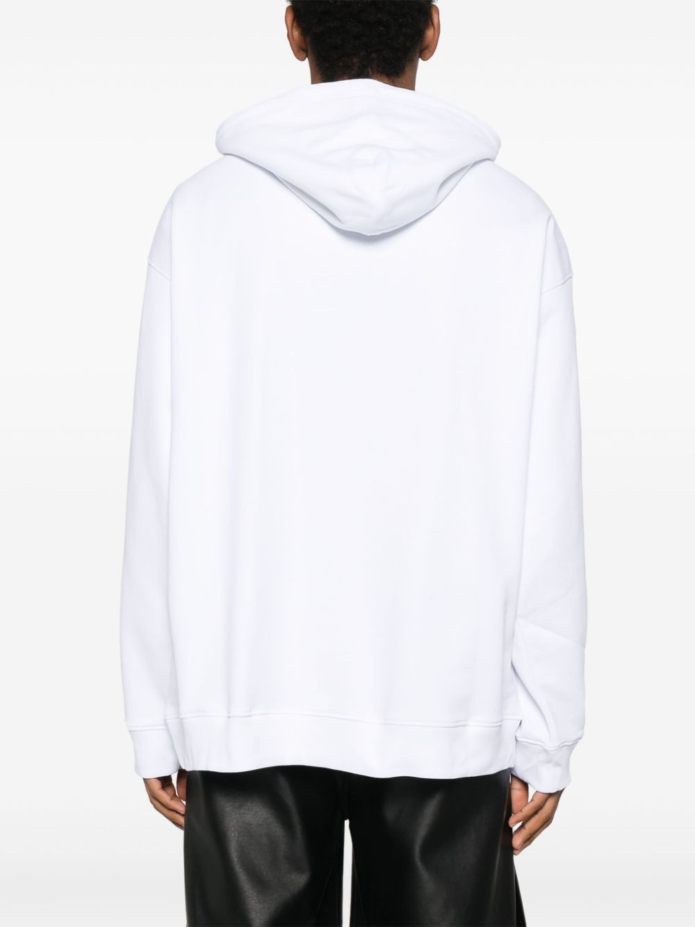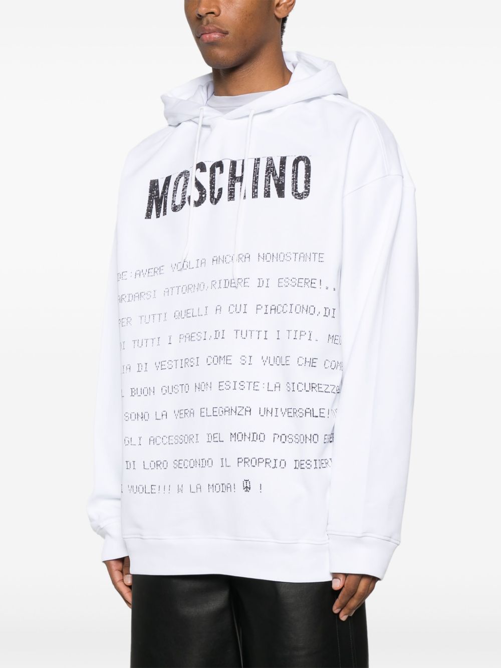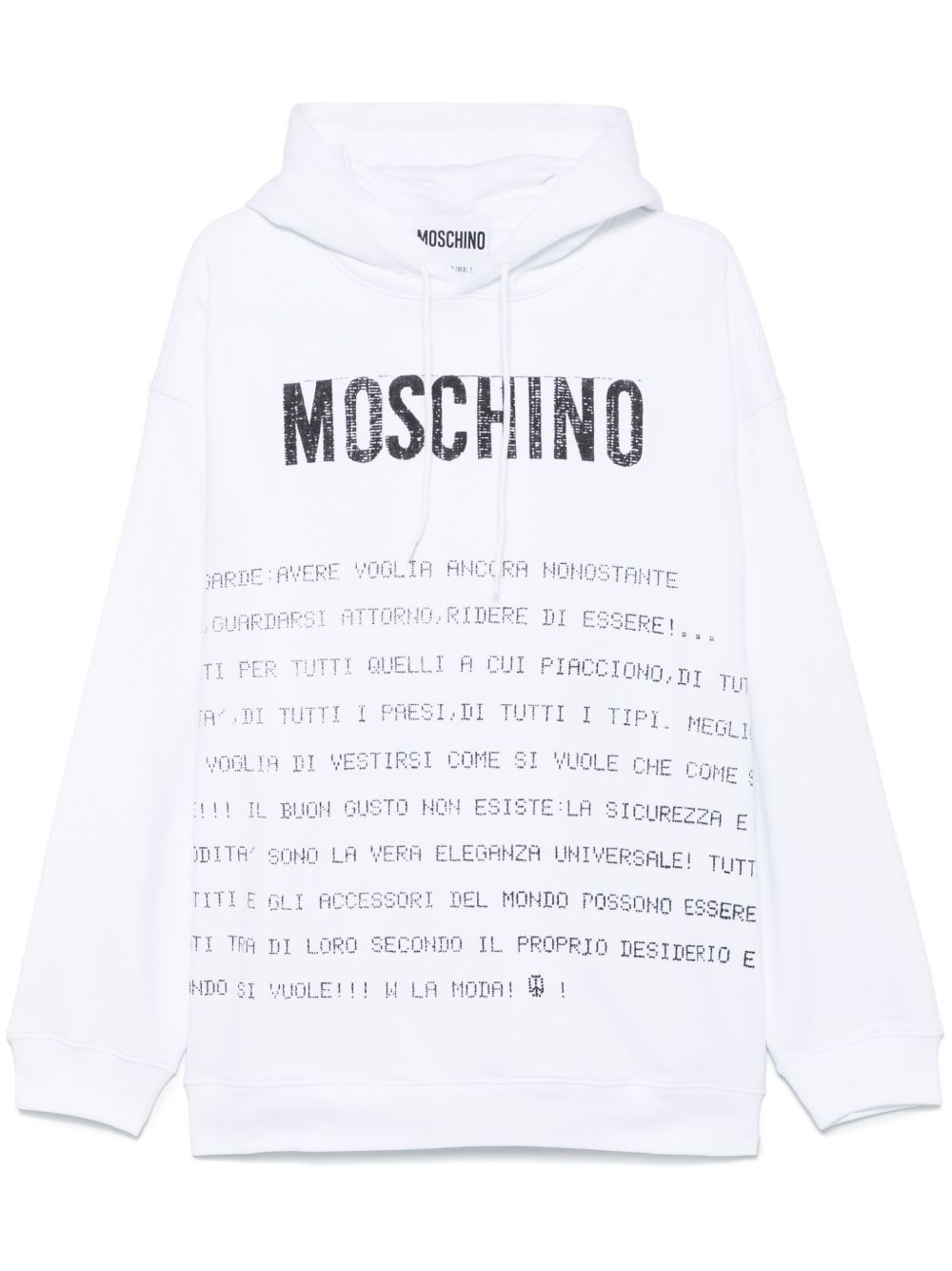 Felpa bianca Message Print di Moschino in cappuccio con coulisse, stampa frontale e orlo dritto.