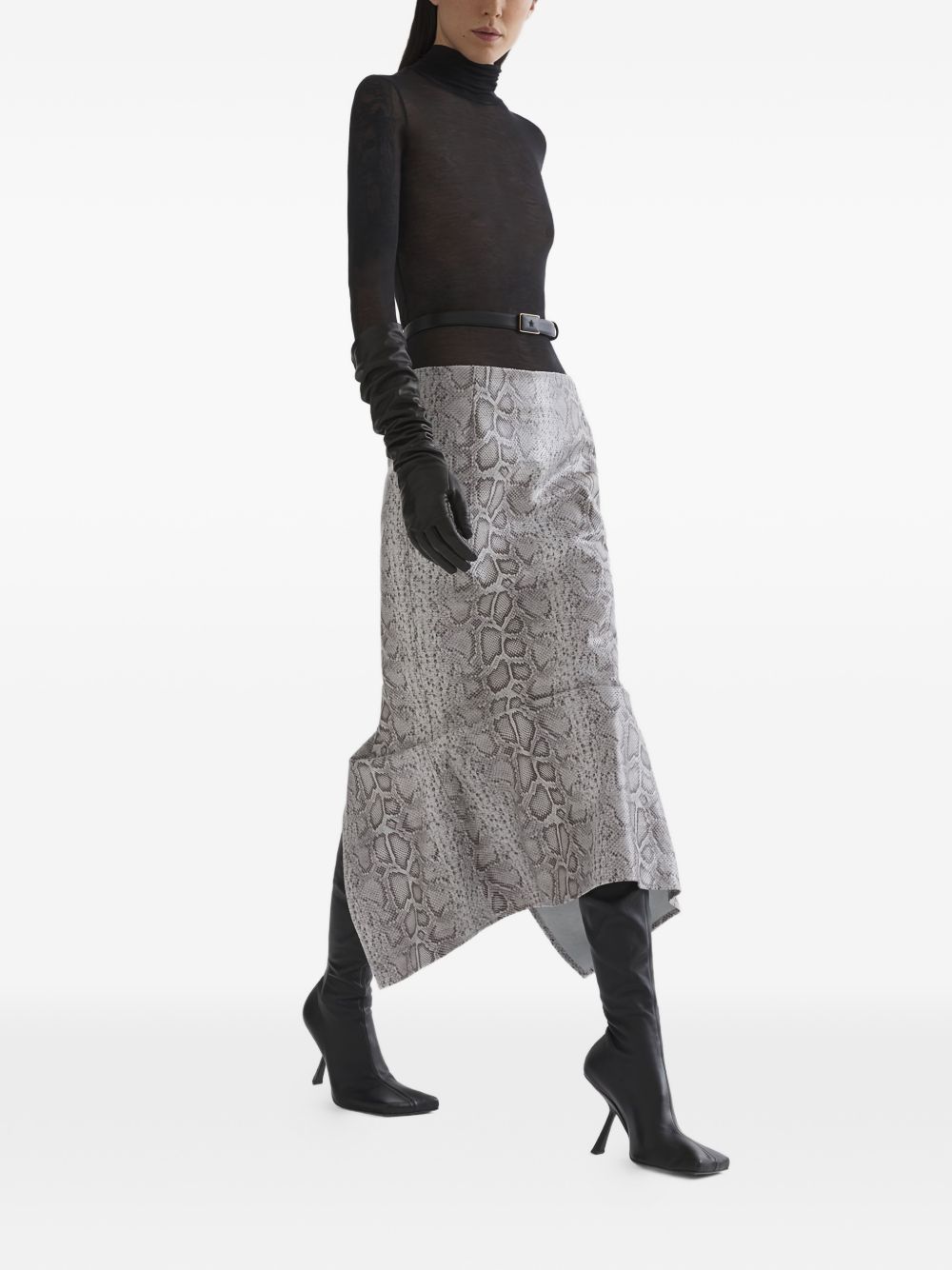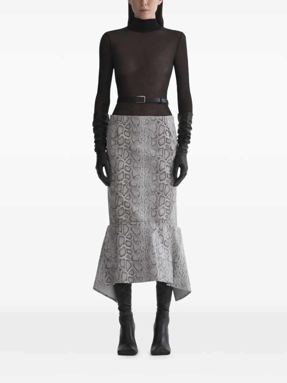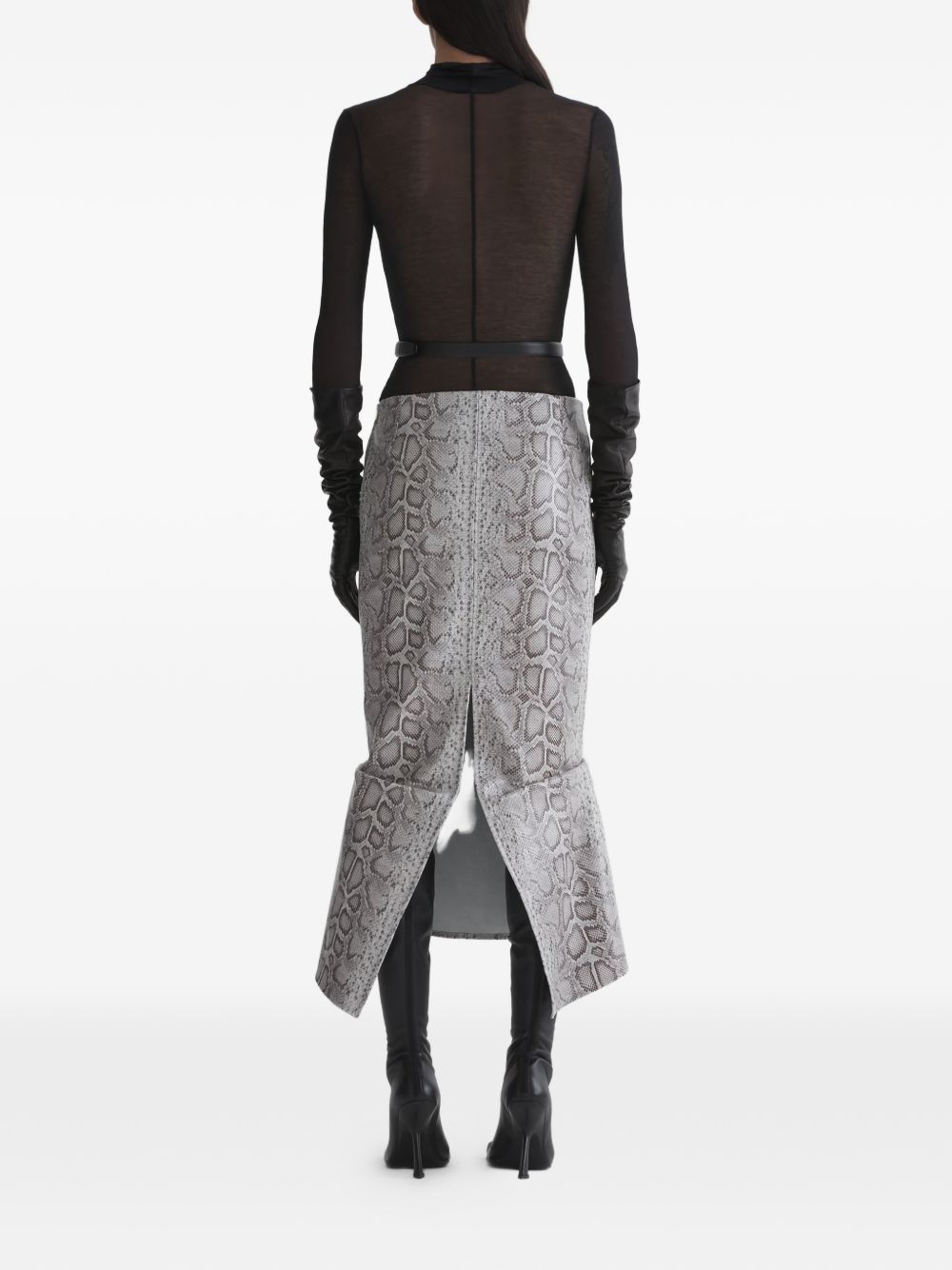 Top nero di Mugler in lyocell con con collo alto, maniche lunghe e minitura trasparente.