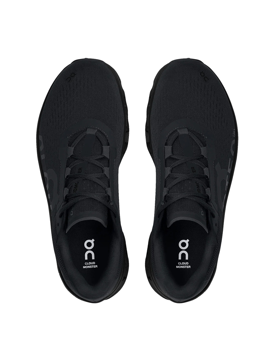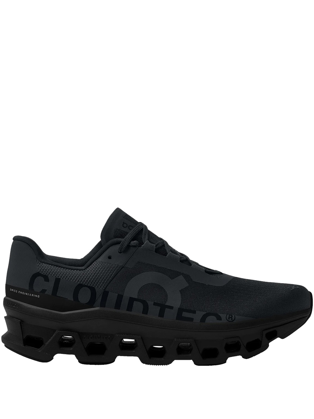 Sneakers Cloudmonster nera di On Running in poliestere con punta tonda, design slip-on con lacci, logo laterale, massima CloudTec®, ammortizzazione con superschiuma Helion e Speedboard®.