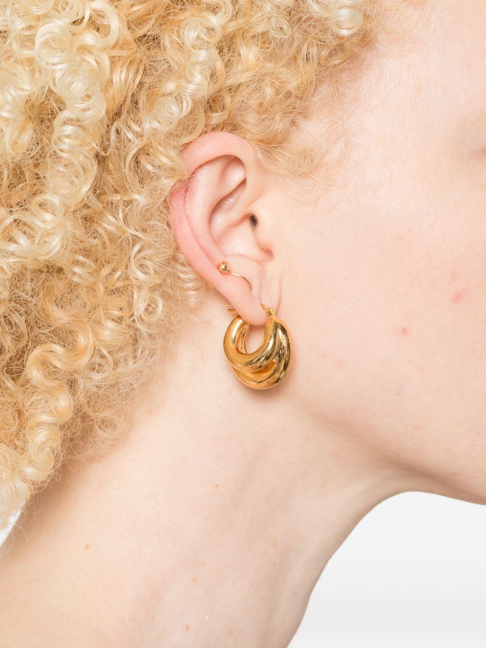 Orecchini Blow up Huggies di Panconesi in rame con design rotondo e chiusura per lobi forati.
