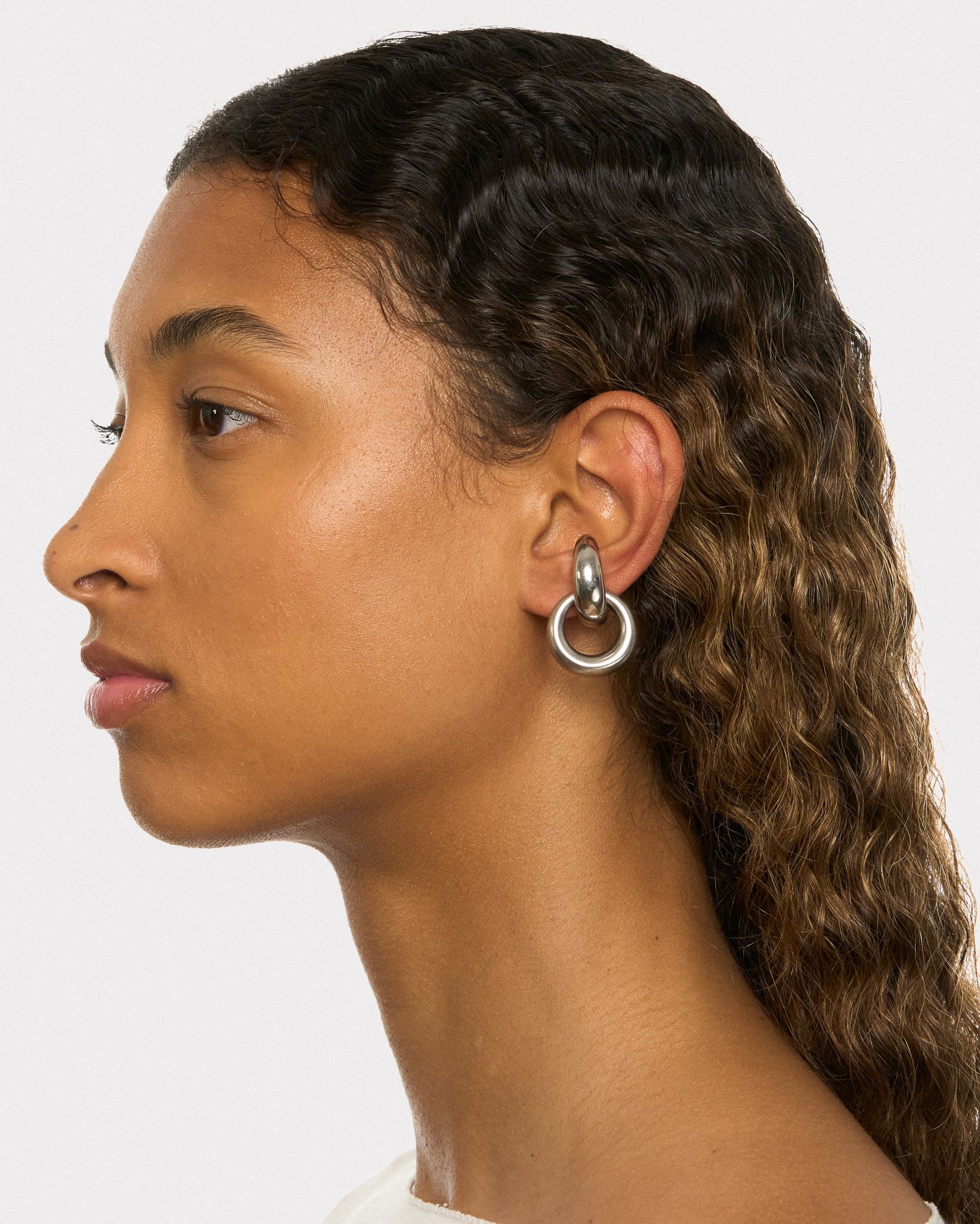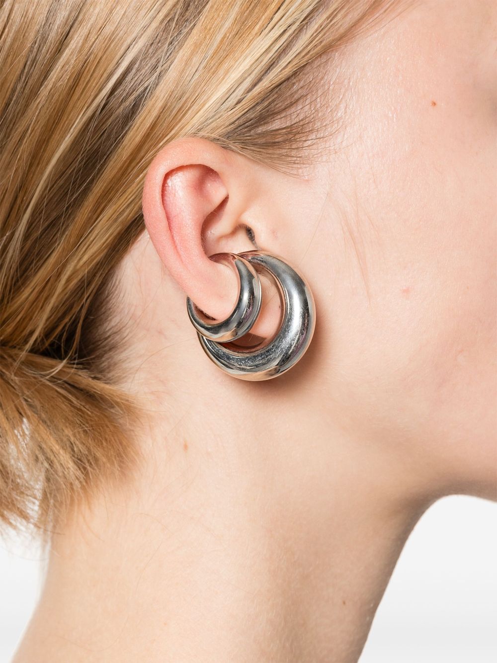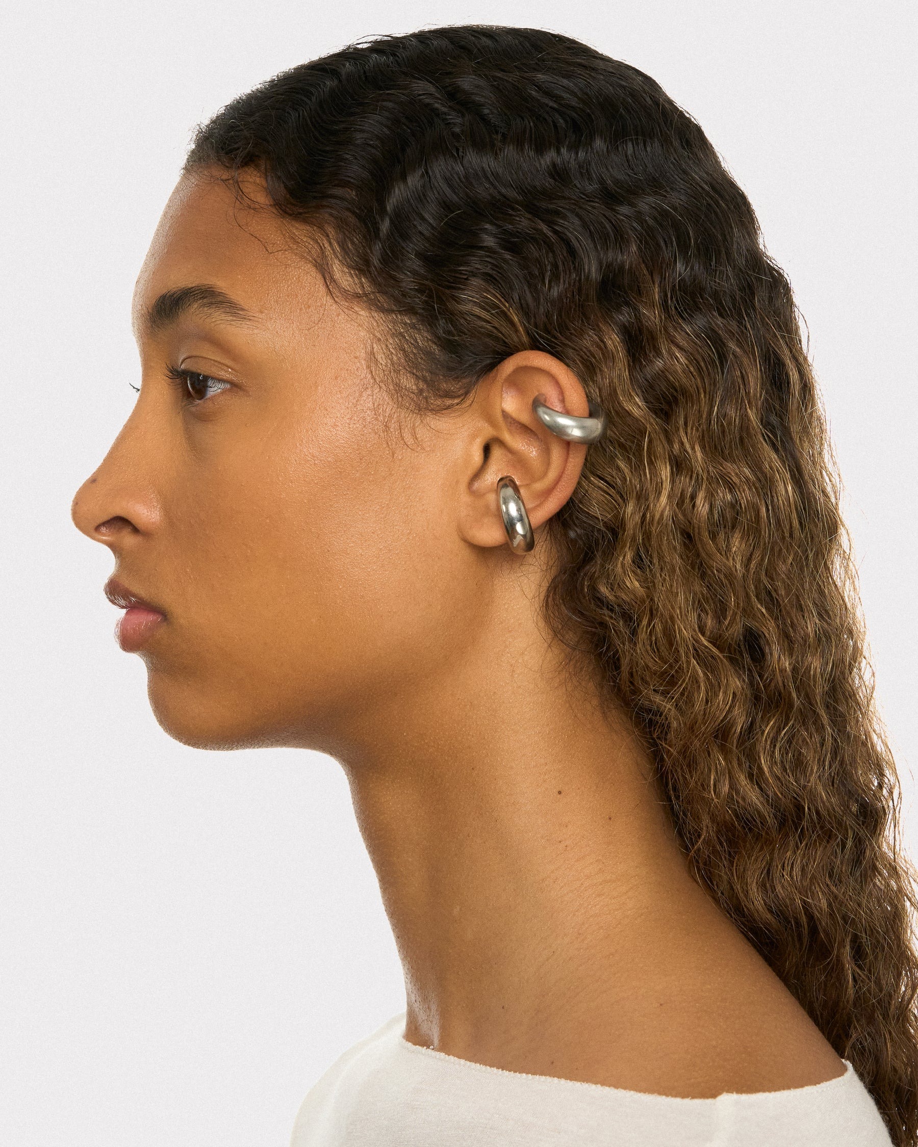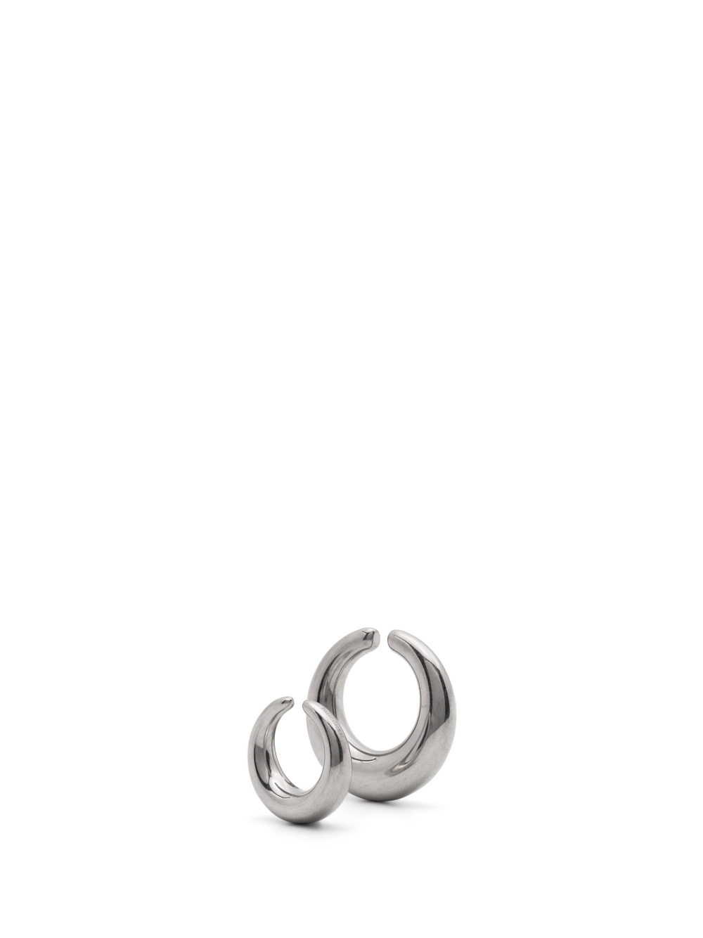 Orecchini color argento Circle Cuffs di Panconesi in rame con design circolare e senza chiusura.