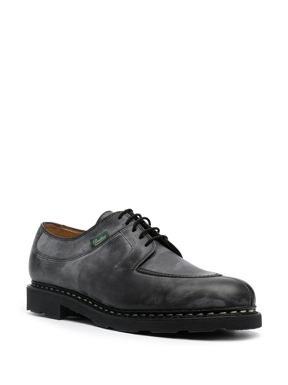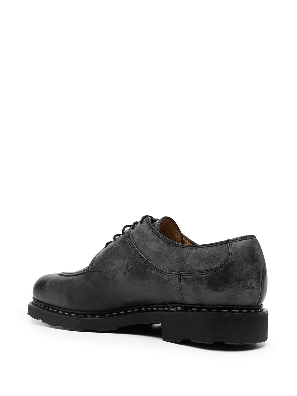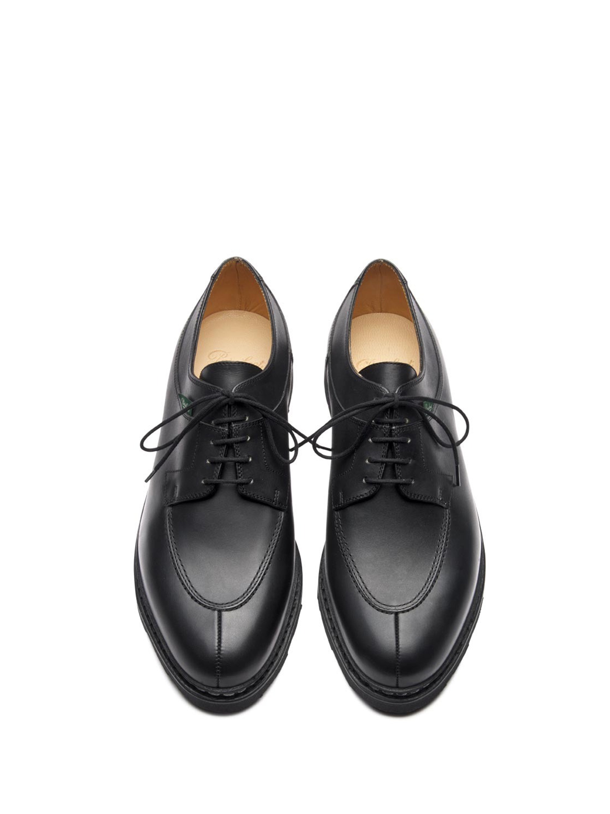 Scarpe stringate nere Avignon di Paraboot in pelle con micro targhetta, punta tonda, chiusura frontale con lacci e suola piatta.