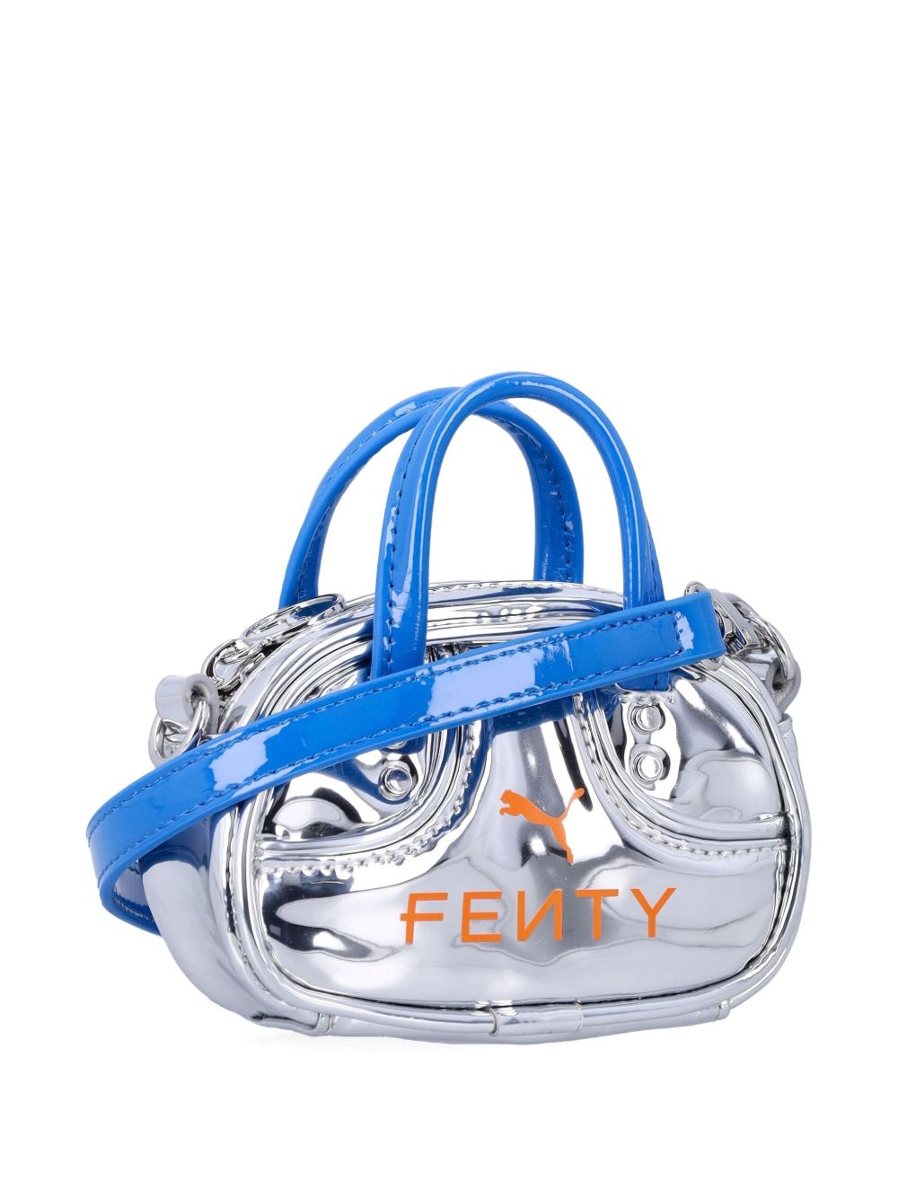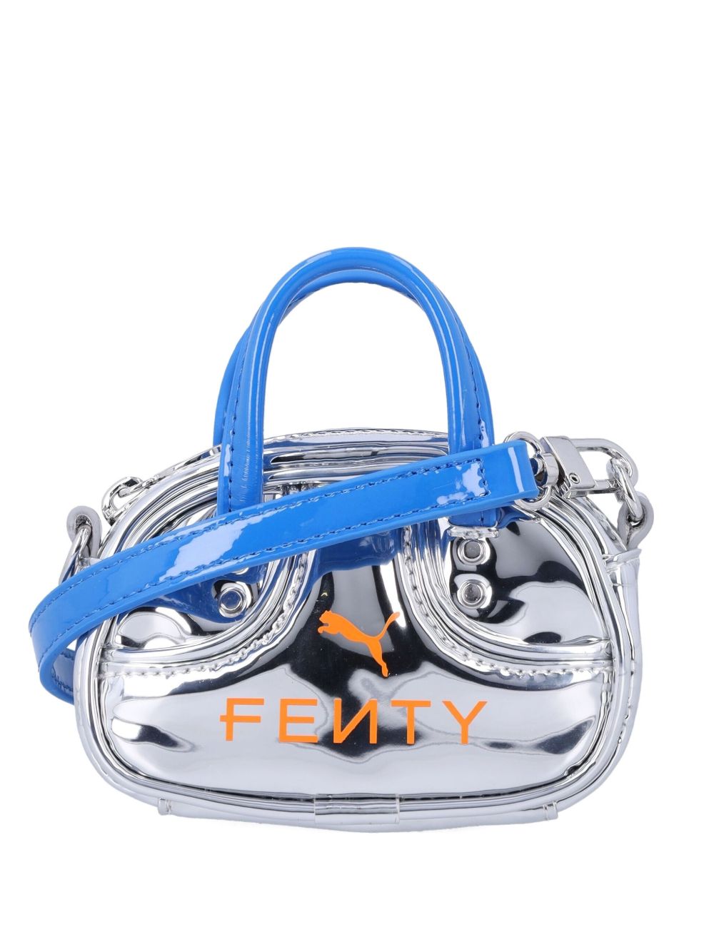 Borsa argento Pocket di Puma per Fenty in PVC e cotone con doppio manico, chiusura con zip e tracolla regolabile e rimovibile.