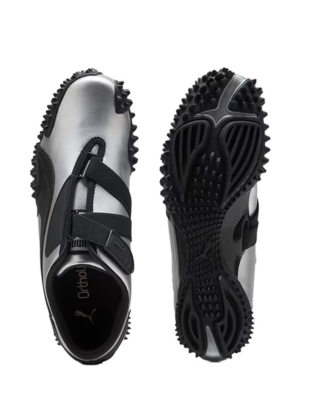Sneakers argento Mostro Metal di Puma in tessuto con punta tonda, chiusura con fascia e suola dentellata in gomma.