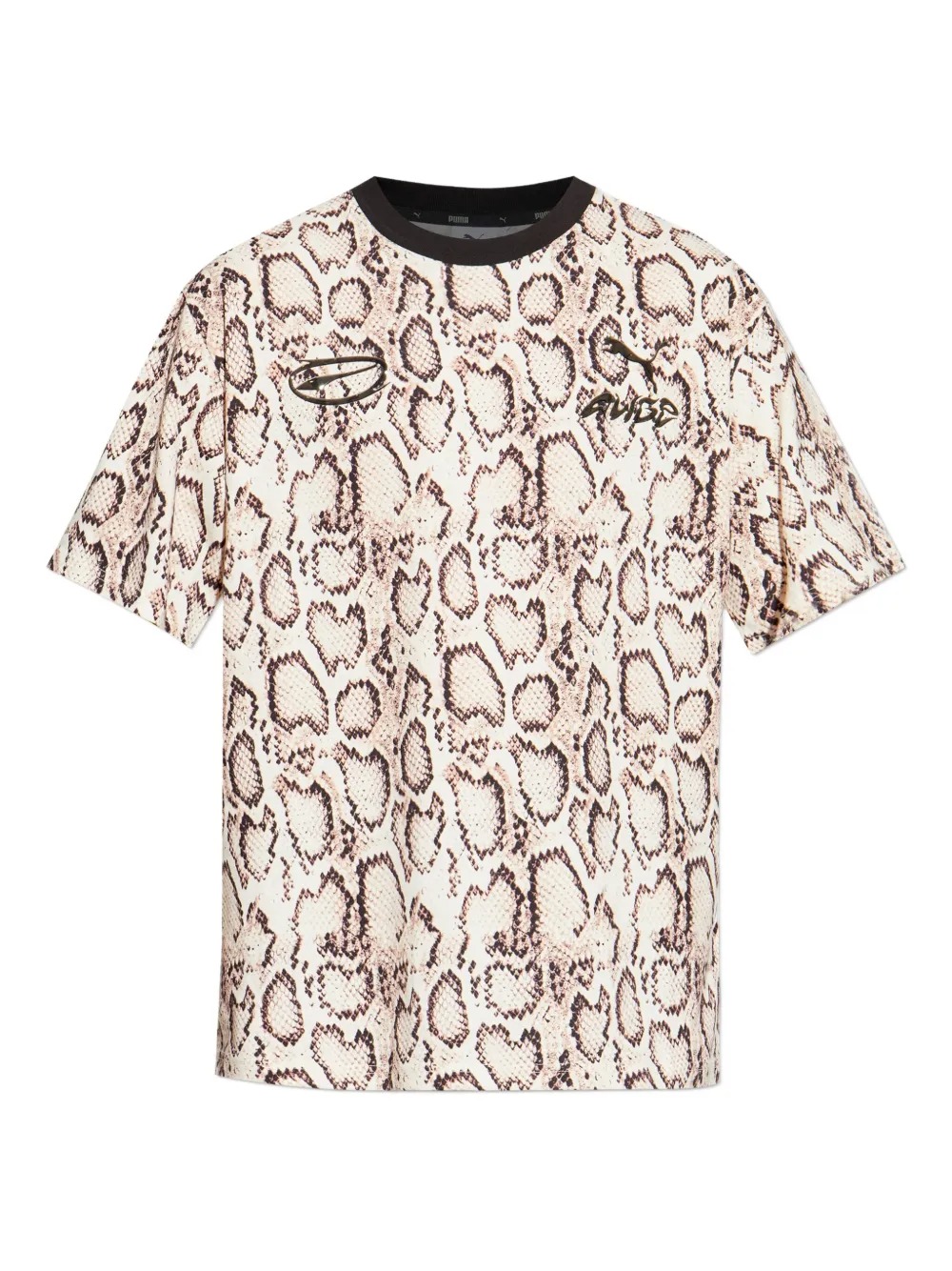 T-shirt avorio Snakeskin di Puma x A$ap Rocky in tessuto stampa animalier, dettaglio logo, girocollo, maniche corte e ogo sul retro.