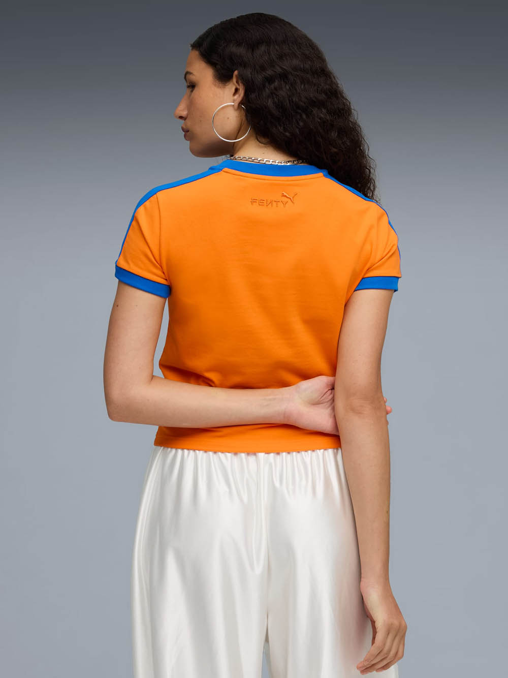 T-shirt T7 Slim di Puma x Fenty in cotone con girocollo, manica corta e logo frontale.