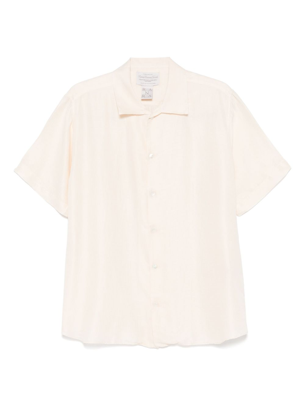 Camicia ecrù Barley di Ranra in seta con chiusura frontale con abbottonatura, colletto alla cubana e maniche corte.