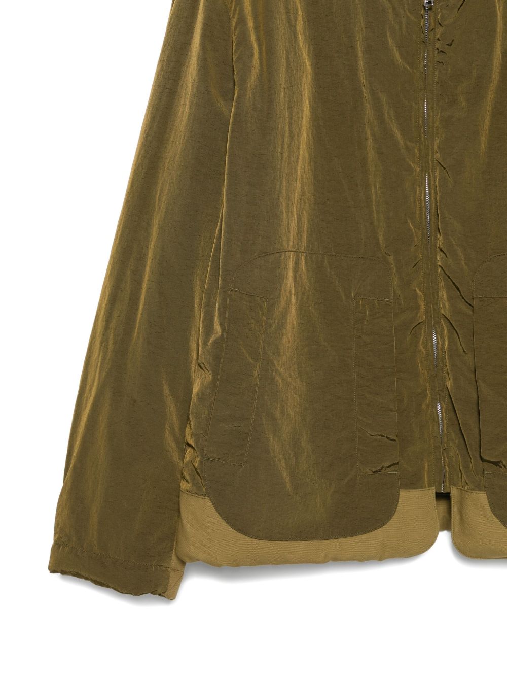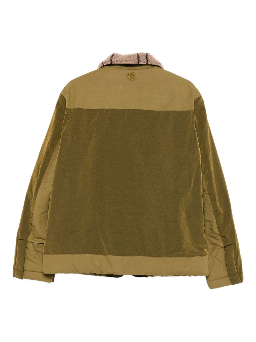 Giacca oliva Wanderer Canvas Nylon Cotton di Ranra in tessuto con collo sherpa e chiusura frontale con zip e tasche applicate.